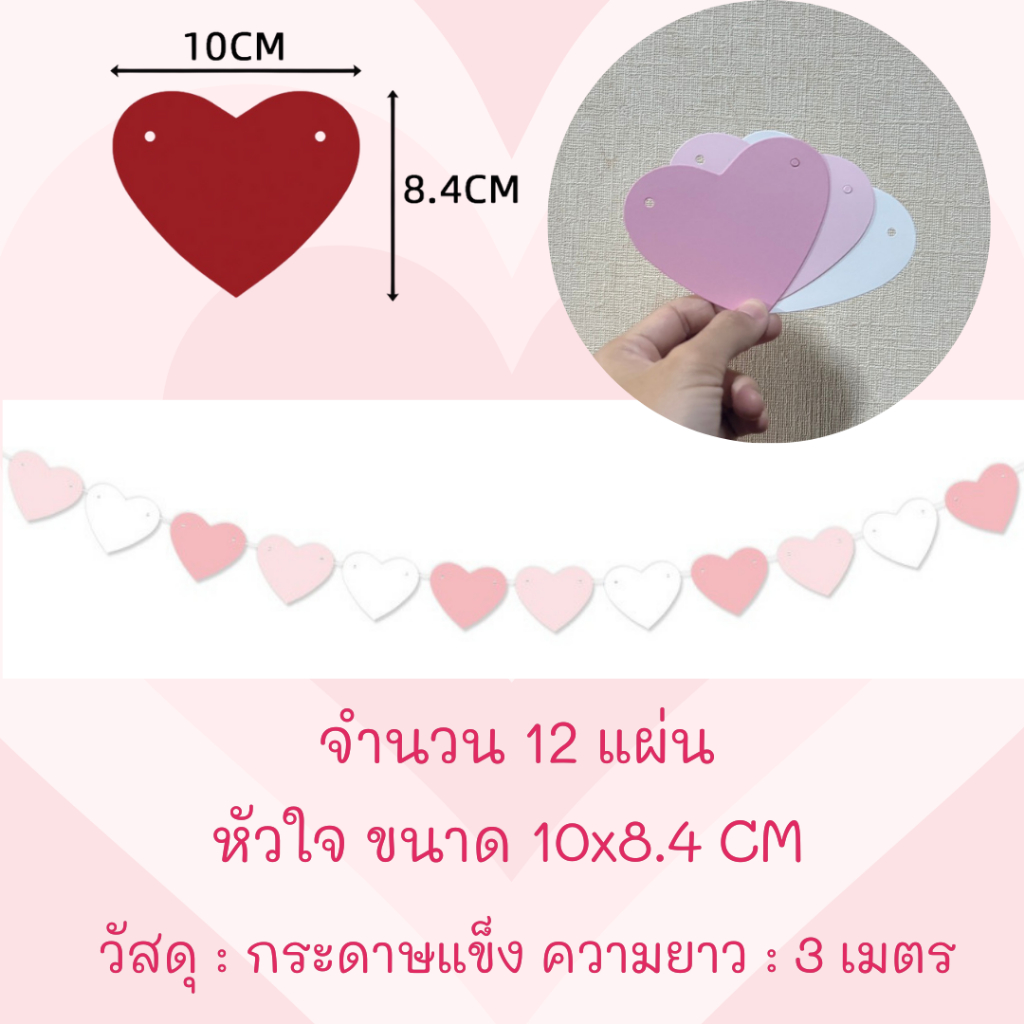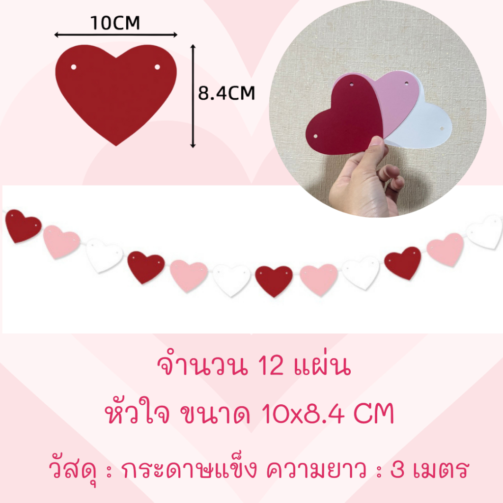 ป้ายวาเลนไทน์ ธงวาเลนไทน์ ธงราวหัวใจ วันแห่งความรัก LOVE Happy Valentine