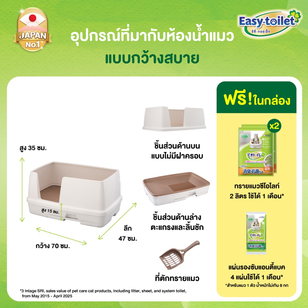Unicharm Easy-toilet ห้องน้ำแมวลดกลิ่น เก็บกลิ่น อีซี่ทอยเล็ท แบบกว้างสบาย สำหรับแมวตัวใหญ่ (Deo-toilet เดิม)