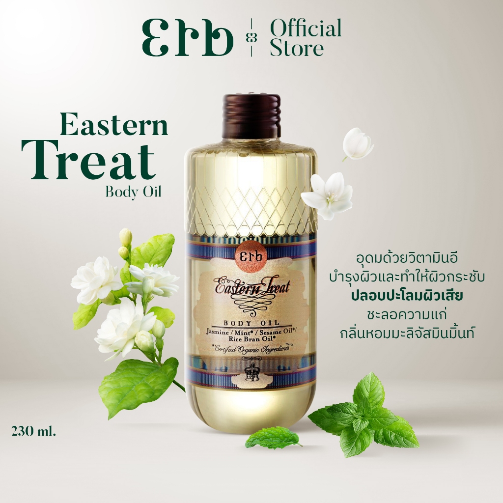 Erb Eastern treat Body Oil 230 ml. ออยล์ทาผิว กลิ่นมะลิจัสมินมิ้นท์ Relaxและปลอบปะโลมผิวเสีย เติมความชุ่มชื้น ซึมไว เอิบ