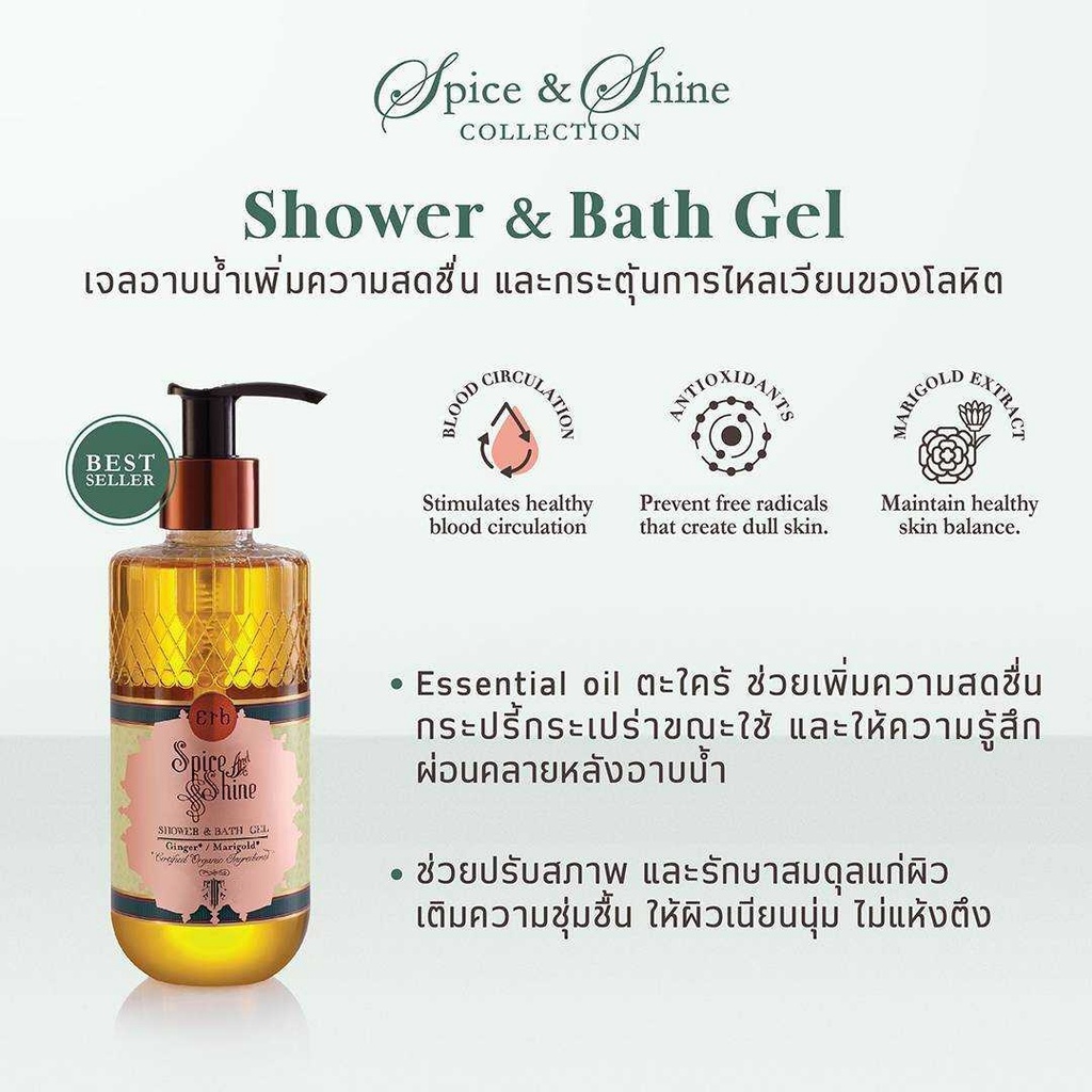 Erb Spice & Shine Shower & Bath Gel 230ml เอิบ เจลอาบน้ำ กลิ่นจิงเจอร์ แมรี่โกลด์ รักษาสมดุลผิว เนียนนุ่ม ไม่แห้งตึง