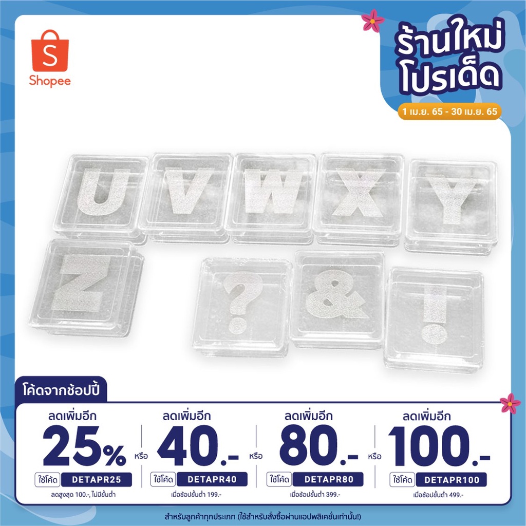 กล่องพลาสติกอเนกประสงค์ลายตัวอักษร U-Z พลาสติกPSขนาด8x8x3ซม