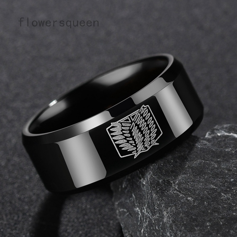 flowersqueen แหวนไทเทเนียมผู้ชาย Titan สีดำ ขนาด 8 มม.