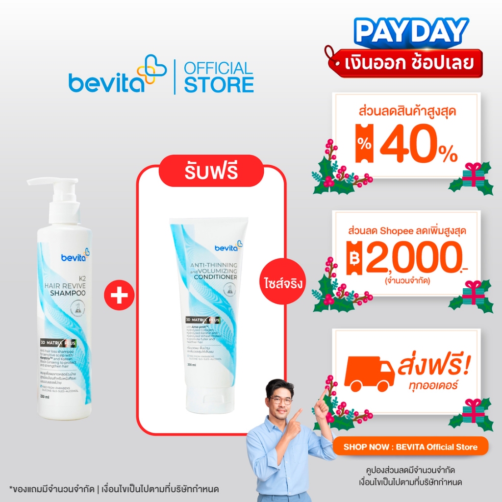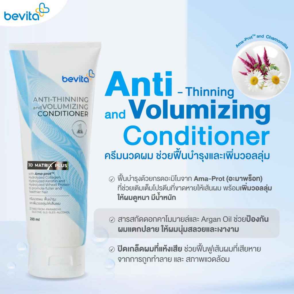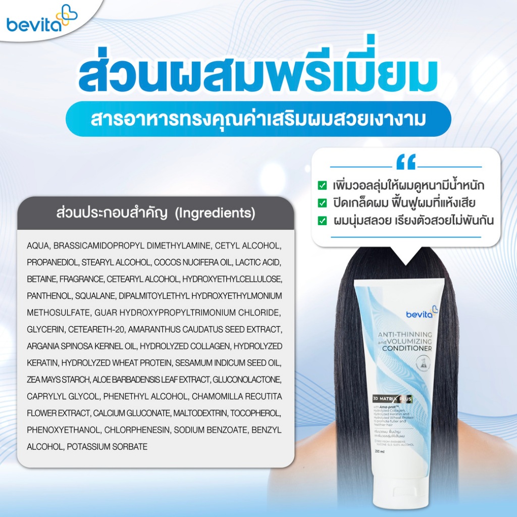 [ซื้อ 1 แถม 1] Bevita แชมพู ลดผมร่วง สูตรอ่อนโยน 1 ขวด & ครีมนวด ฟื้นฟูผมพร้อมเพิ่มวอลลุ่ม 1 หลอด