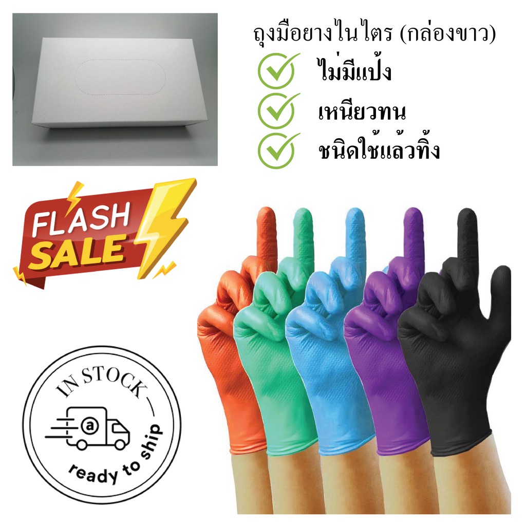 [ถูกที่สุด] ถุงมือยางไนไตร ไม่มีแป้ง สีดำ/สีฟ้า/สีม่วง (100 ชิ้นต่อกล่อง)