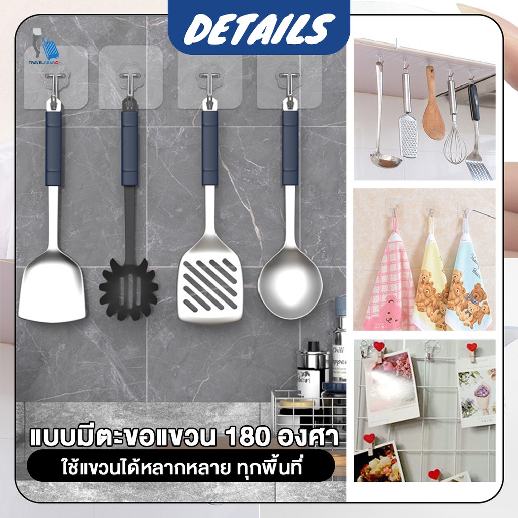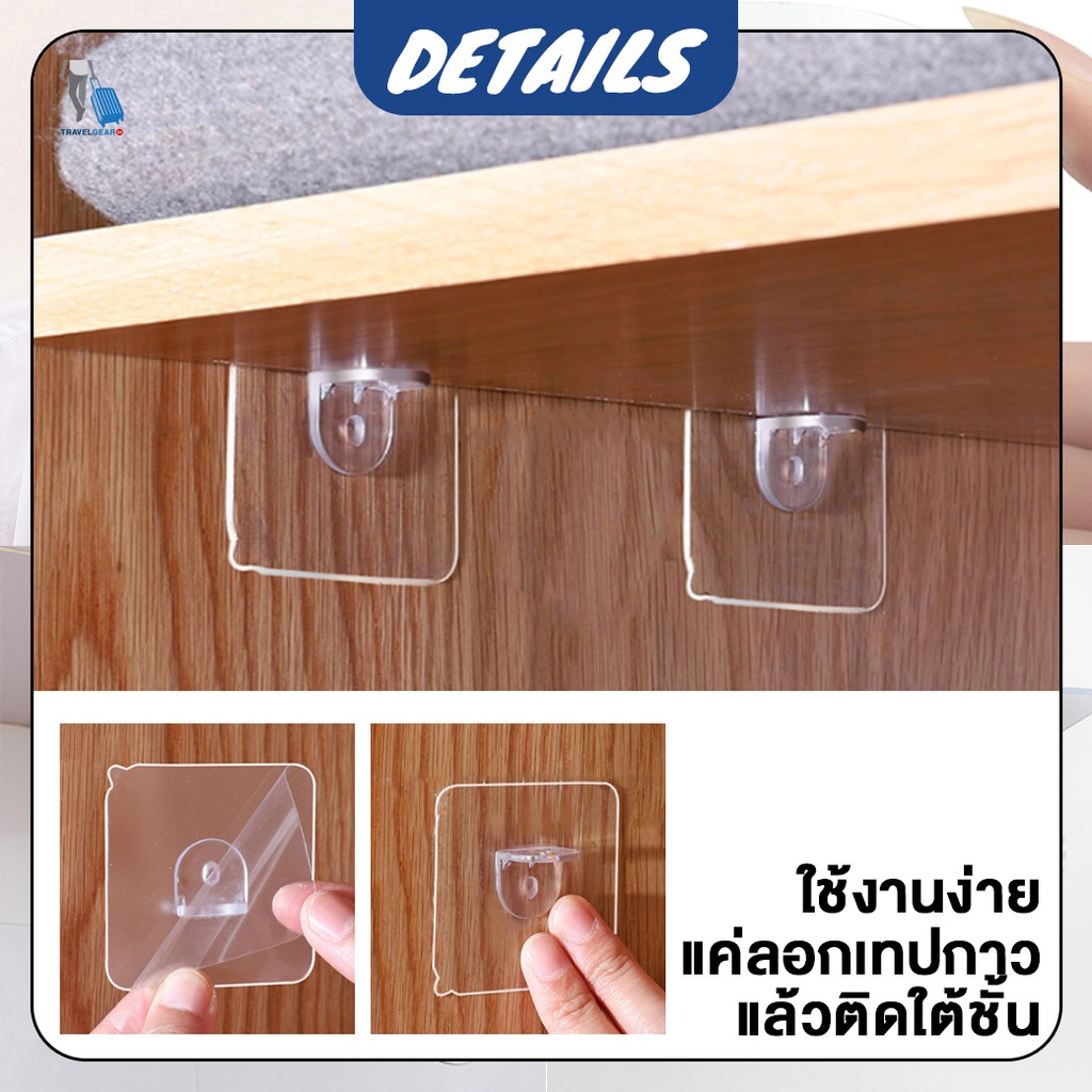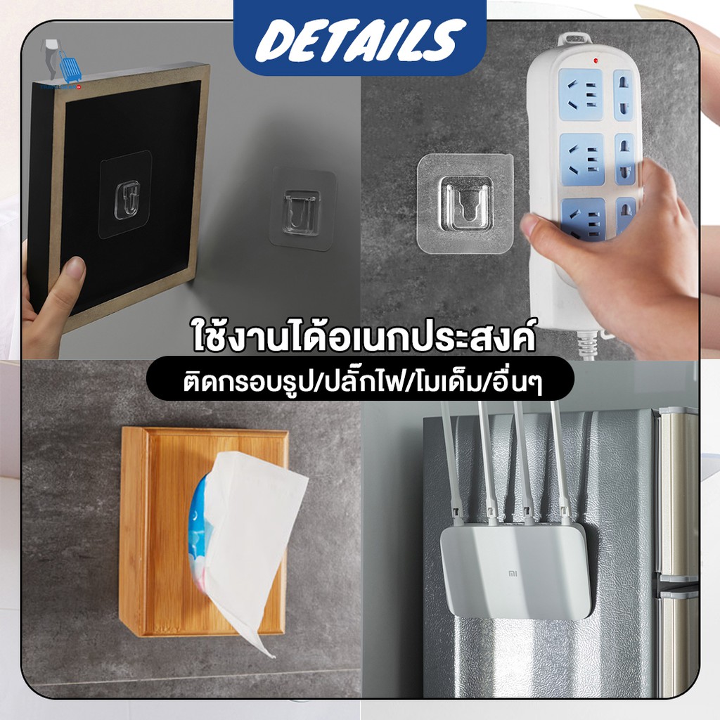 TravelGear24 [พร้อมส่ง] แผ่นกาวติดผนัง ตะขอแขวน ฮุก ตัวยึดแขวนรางปลั๊กไฟ กรอบรูป ไม่ต้องเจาะผนัง - C0089