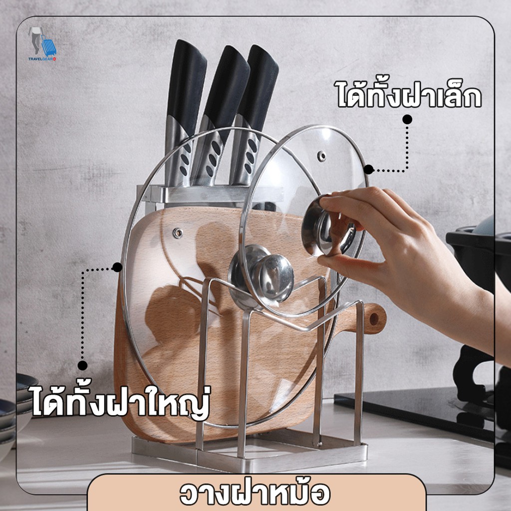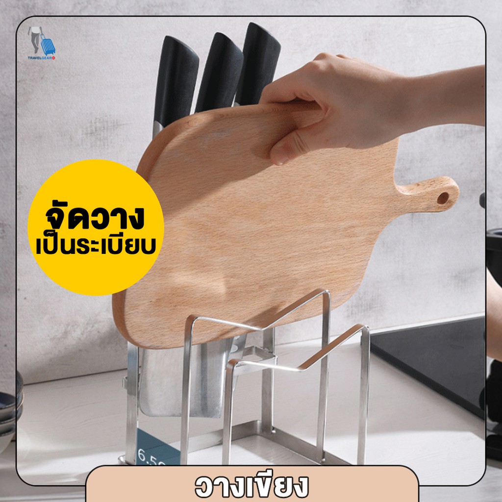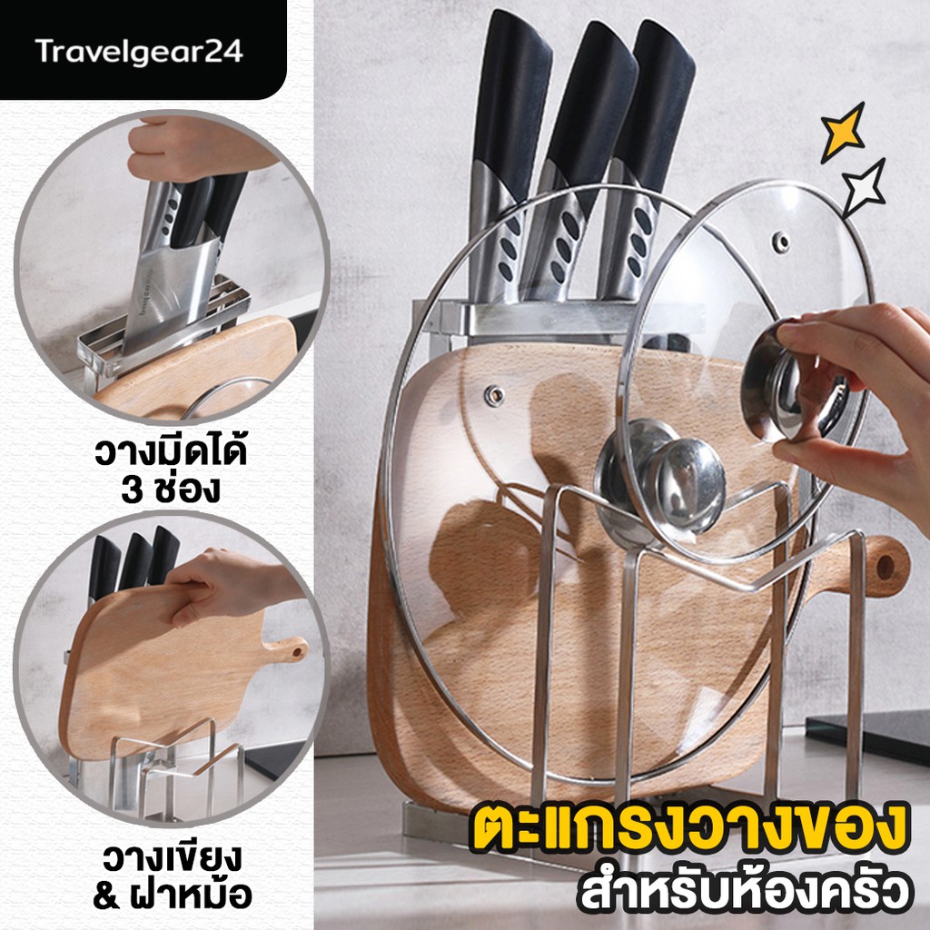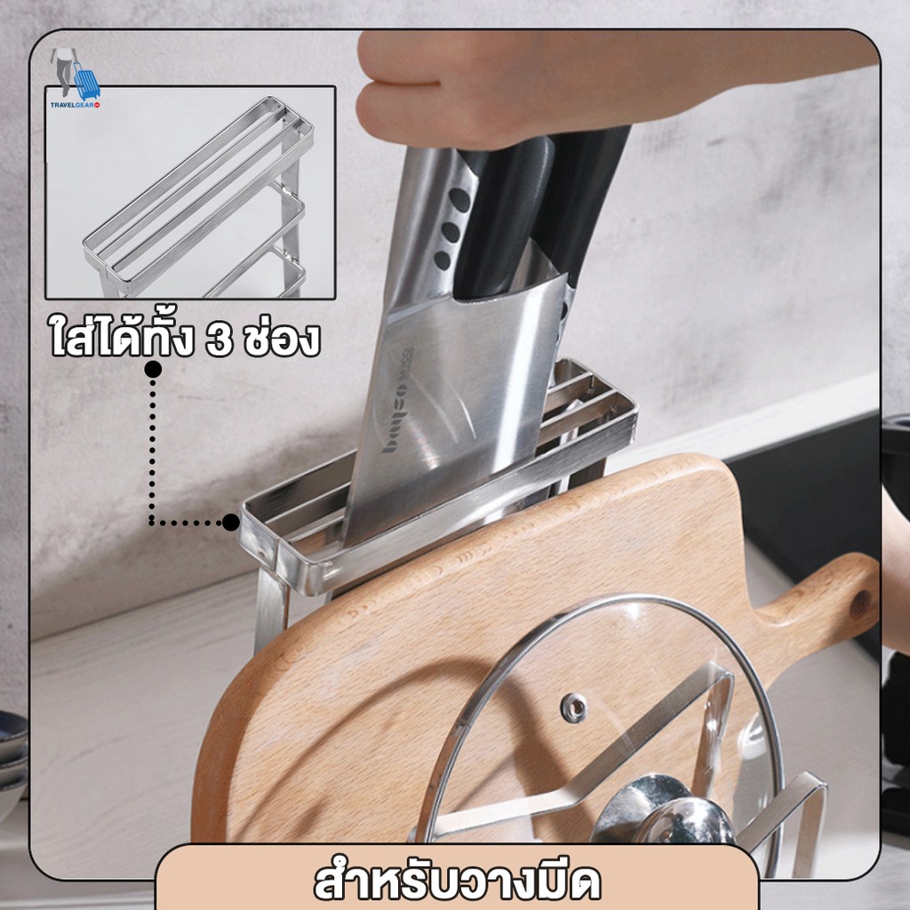 TravelGear24 ชุดเก็บมีด วางเขียง วางฝาหม้อ ที่เก็บอุปกรณ์ สแตนเลส สำหรับห้องครัว knife block holder - C0083