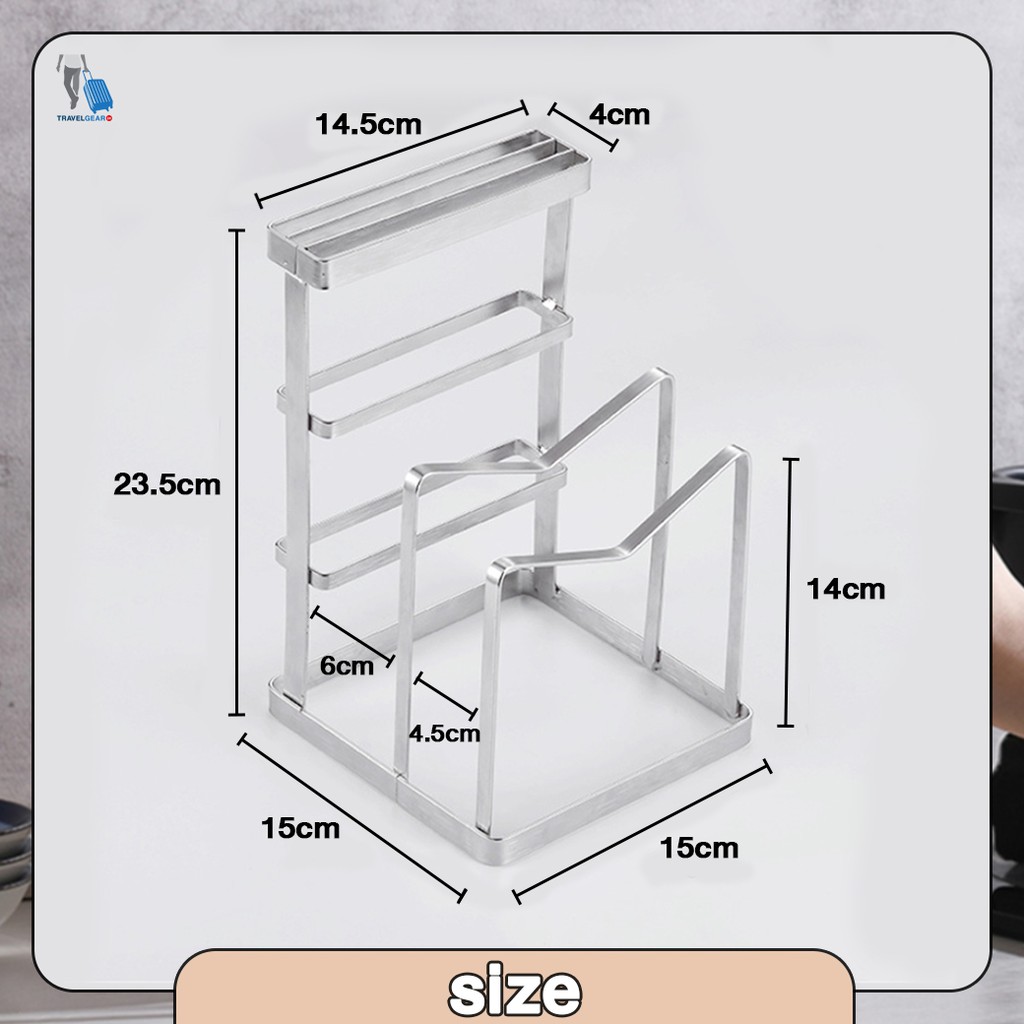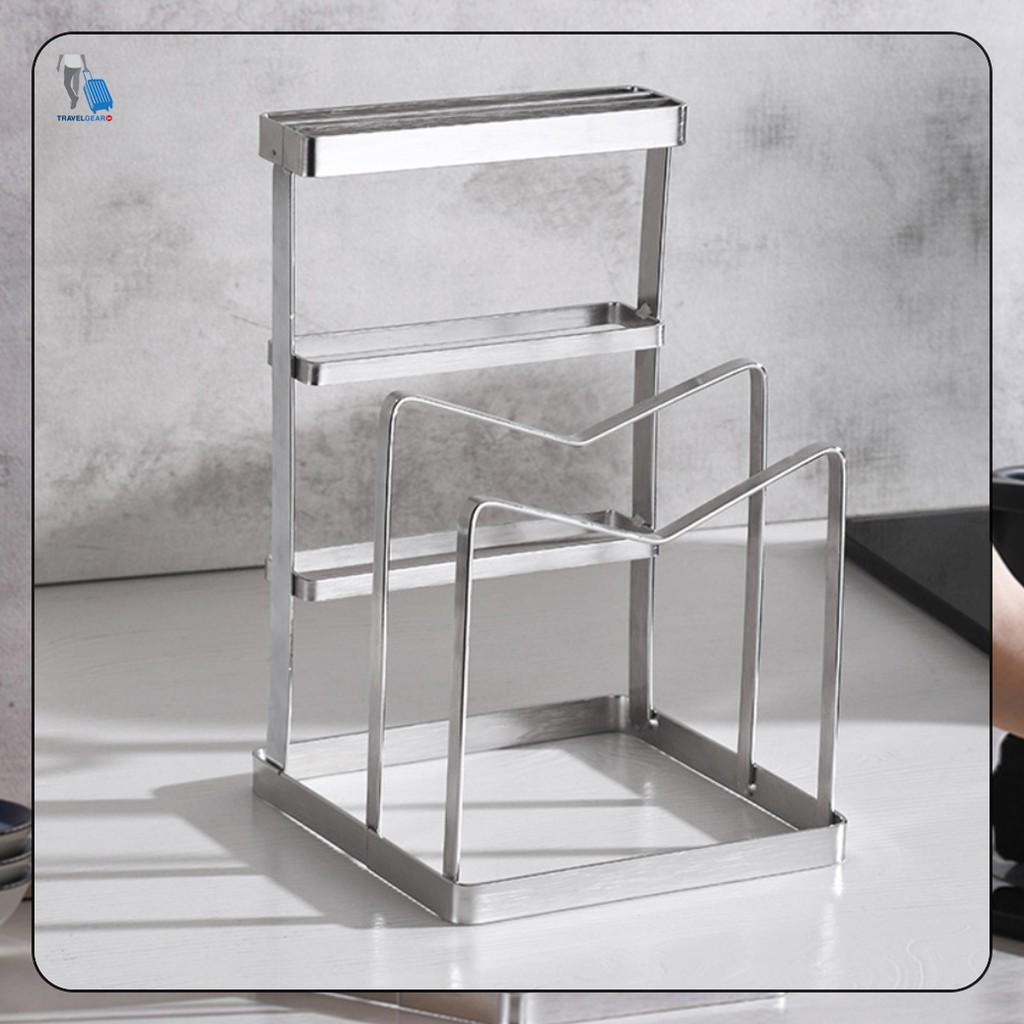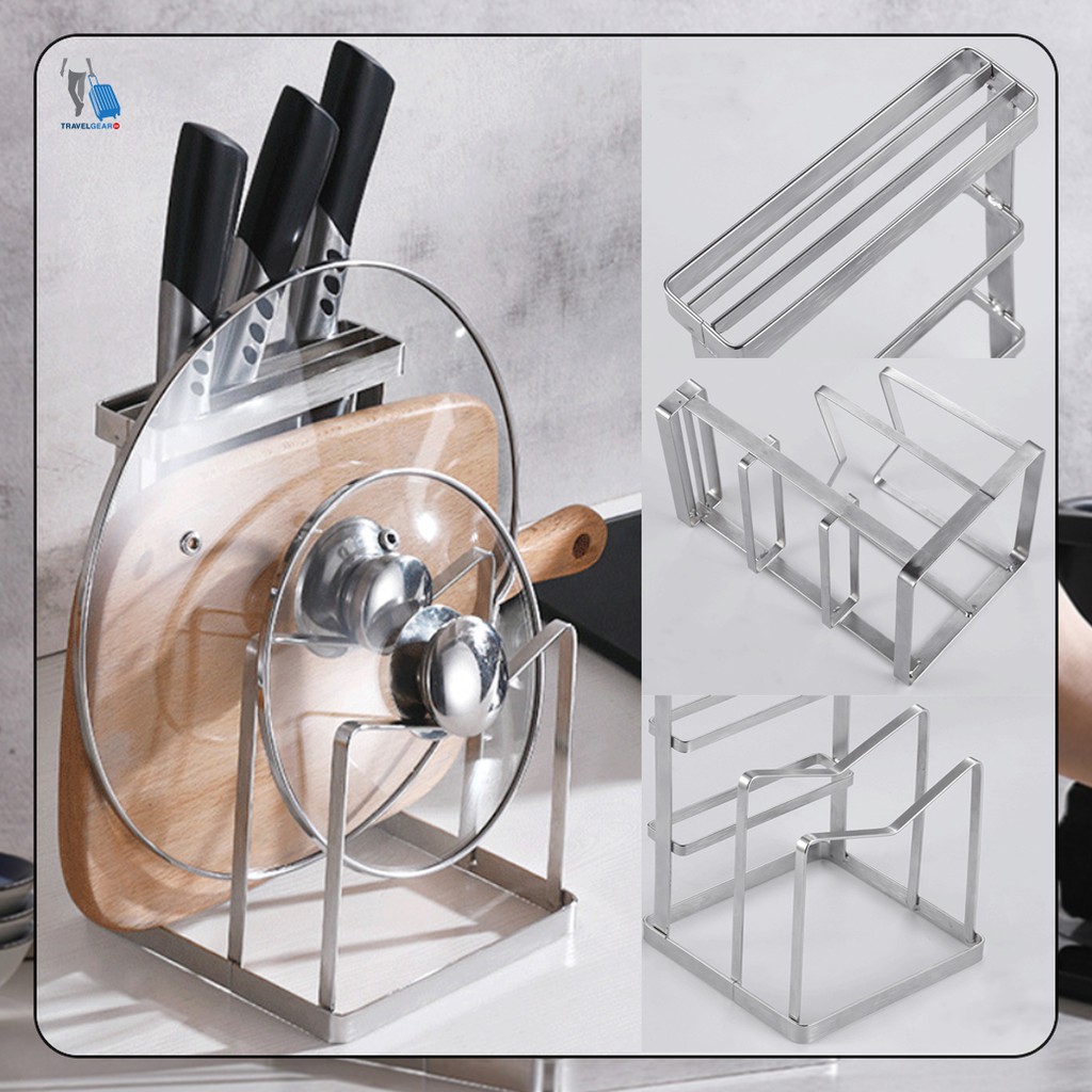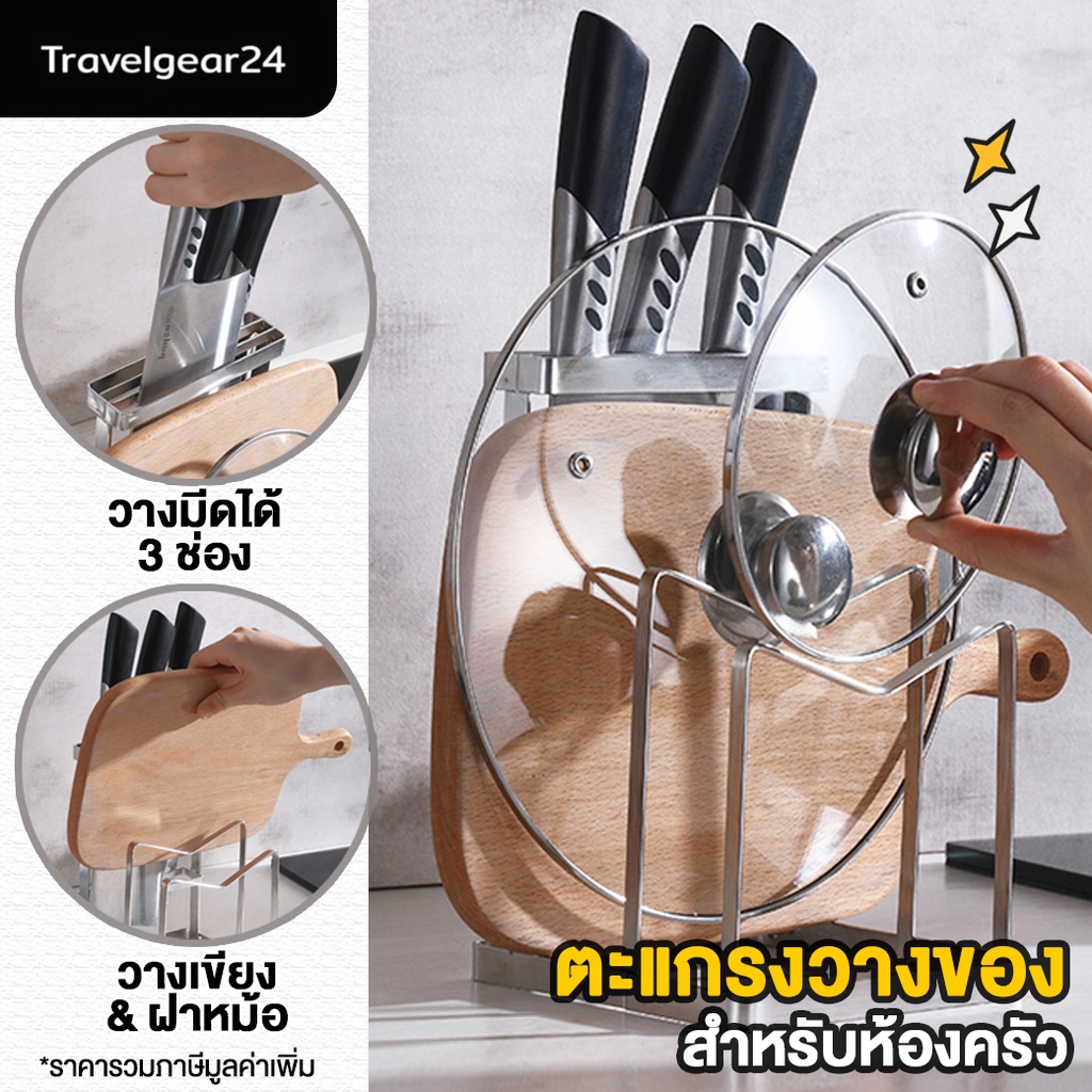 TravelGear24 ชุดเก็บมีด วางเขียง วางฝาหม้อ ที่เก็บอุปกรณ์ สแตนเลส สำหรับห้องครัว knife block holder - C0083