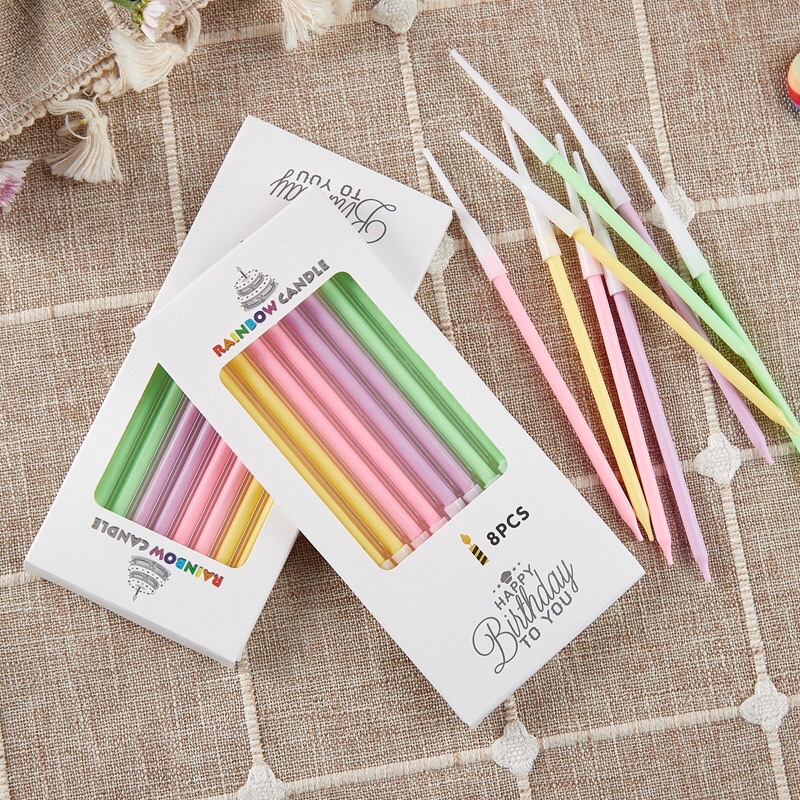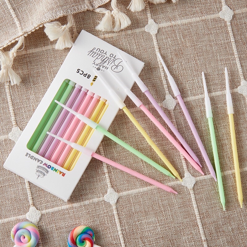 เทียนวันเกิดสีพาสเทล เทียนวันเกิดแบบตรง สีสวยหวาน เทียนแฟนซี (แพค 8 เล่ม)