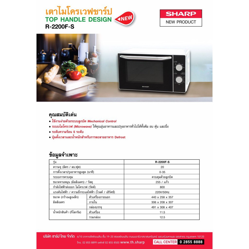 SHARP ไมโครเวฟ 20 ลิตร R-2200F-S (R - 2200F)
