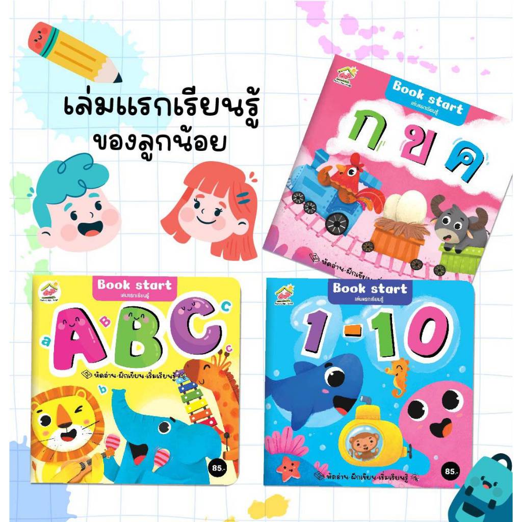 หนังสือกขค abc ตัวเลข ฝึกหัด เล่มแรกเรียนรู้ set 3 เล่ม