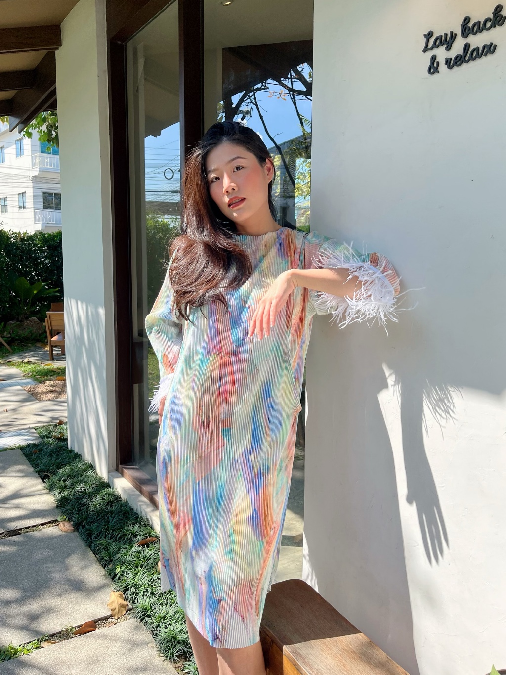 Minirin ชุดคลุมท้องให้นมได้(ใส่ซับในอย่างดี) ใส่สบาย ได้ถึงคลอด รุ่นM40 Long sleeve pleat dress ชุดคลุมท้องใส่ทำงาน