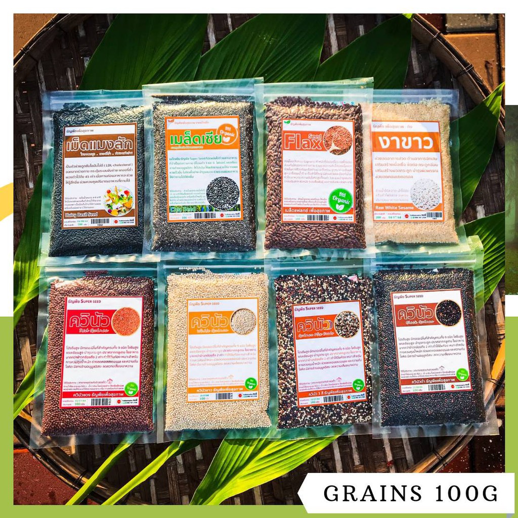 ธัญพืช ซุปเปอร์ฟู้ด 100g ออร์แกนิค100% ควินัว 3 สี เมล็ดเชีย เฟล็กซ์