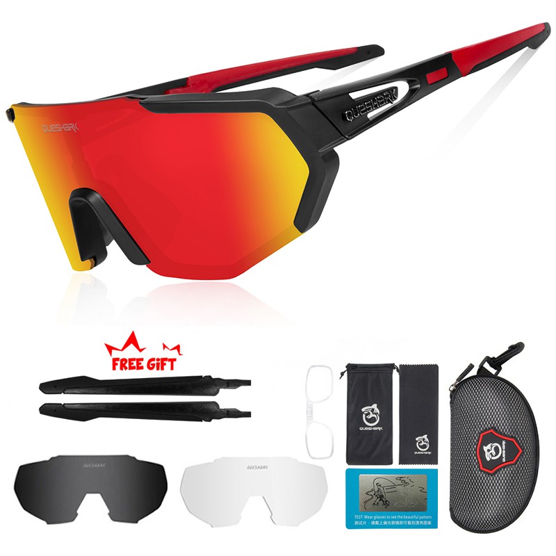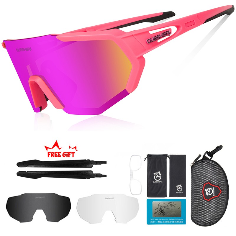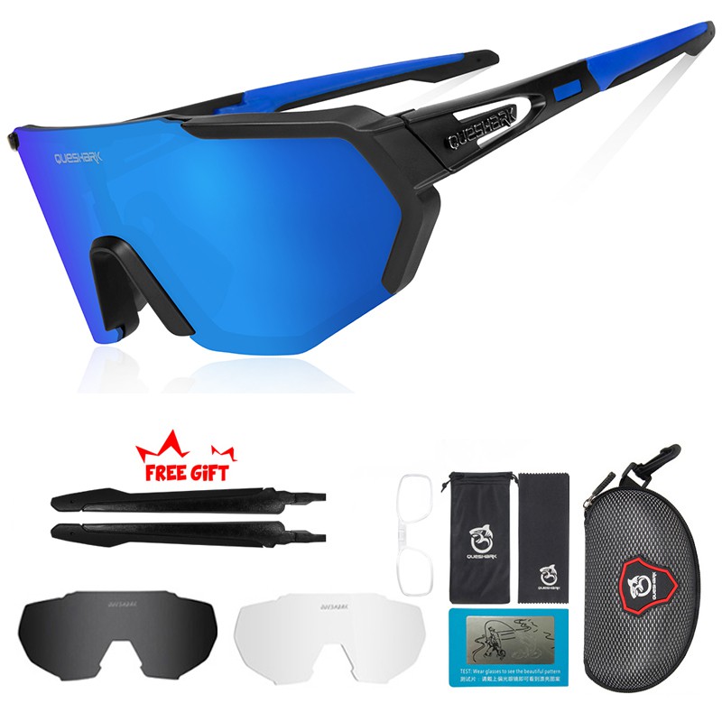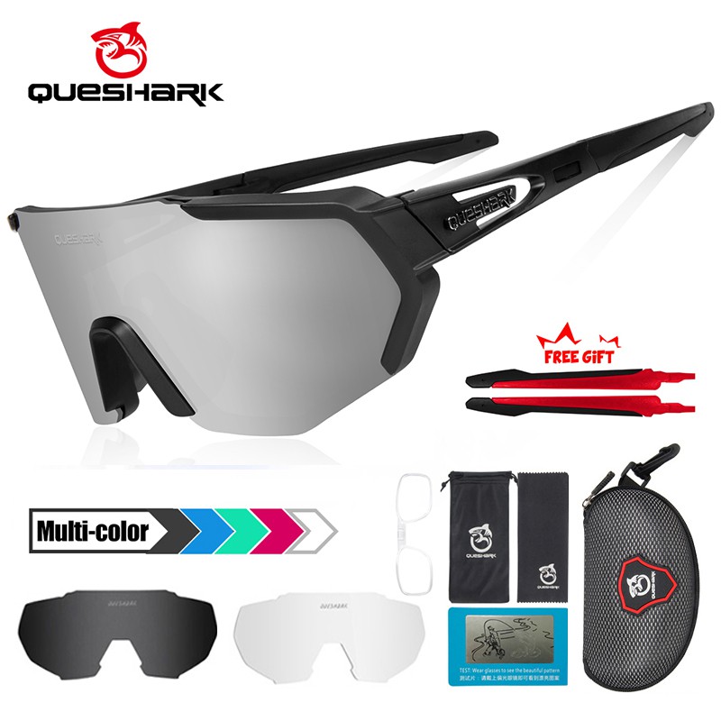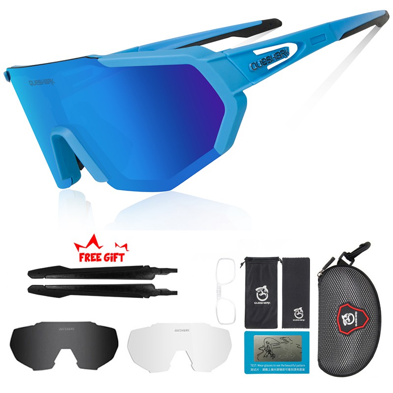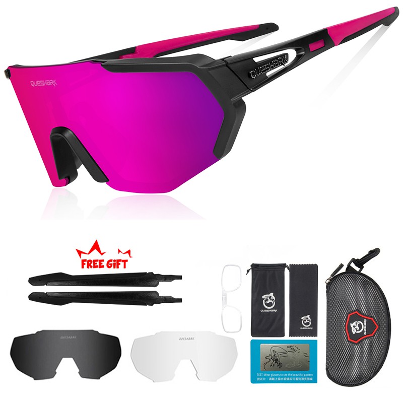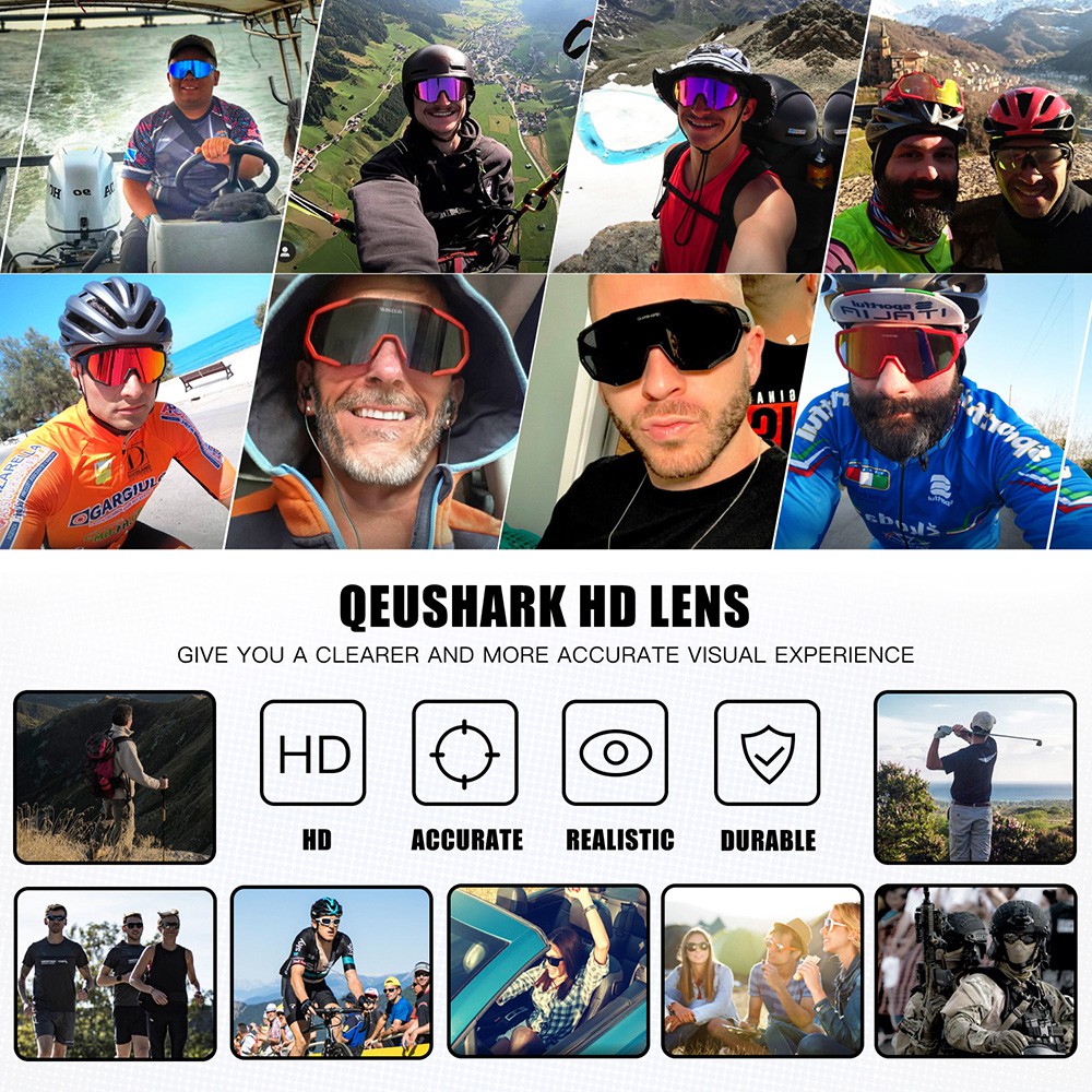 Queshark ผู้หญิงผู้ชายแว่นตากันแดดขี่จักรยานโพลาไรซ์กีฬา MTB จักรยานแว่นตาขี่จักรยานเสือหมอบแว่นตา 3 เลนส์ชุด QE42