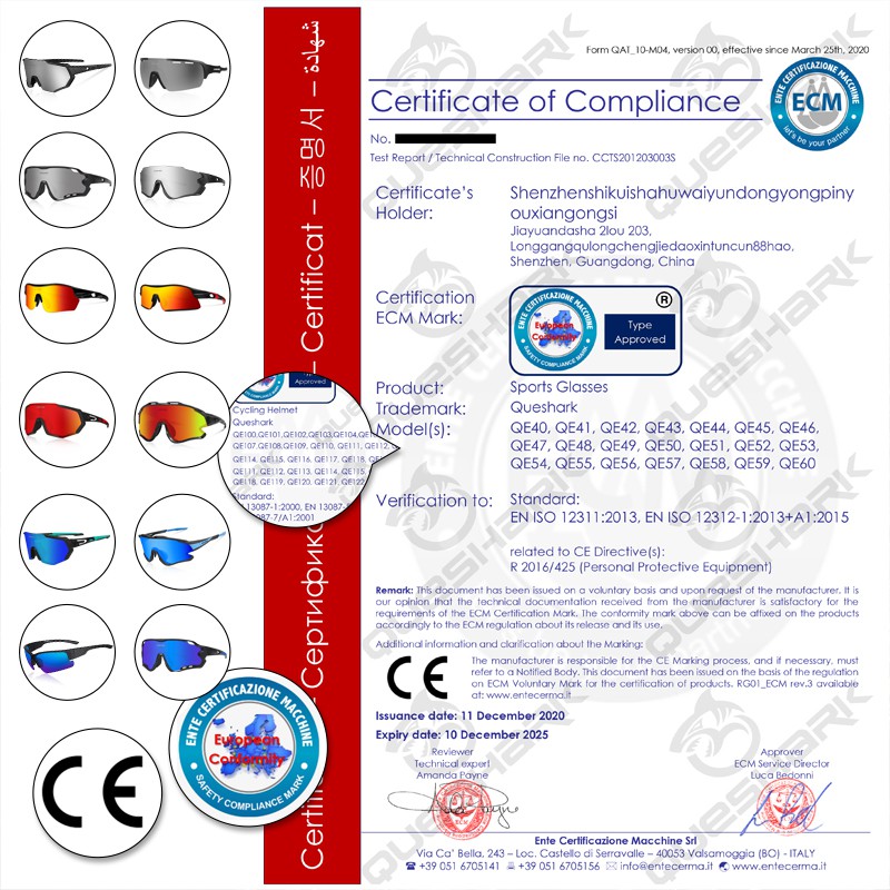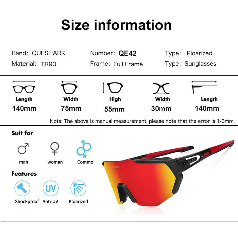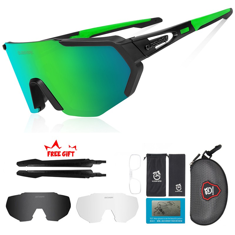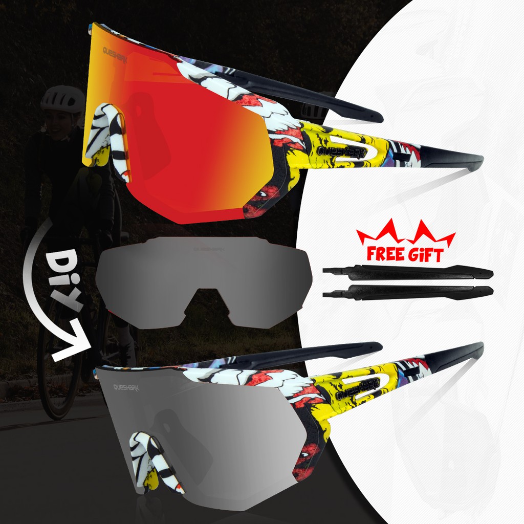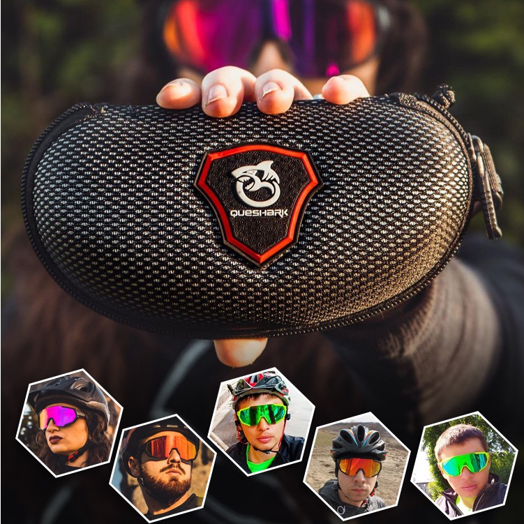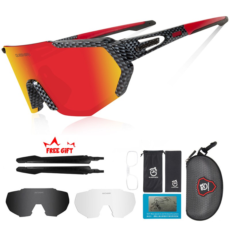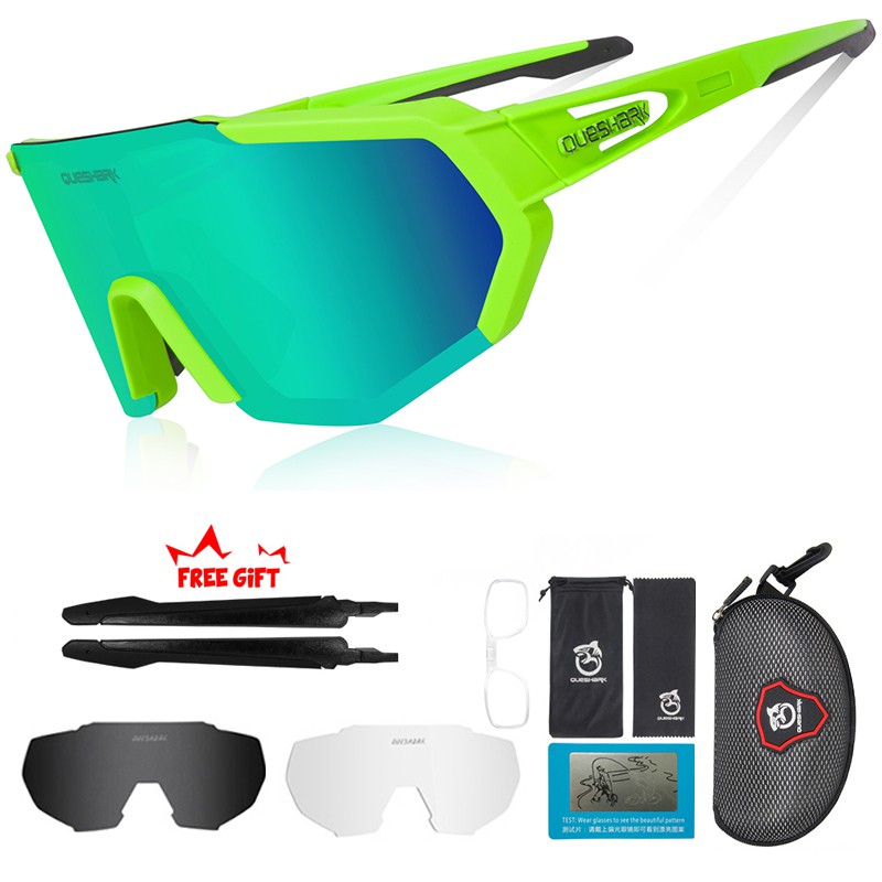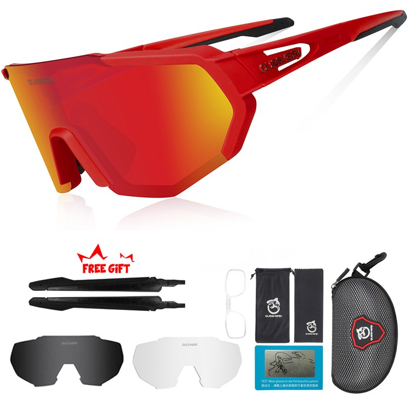 Queshark ผู้หญิงผู้ชายแว่นตากันแดดขี่จักรยานโพลาไรซ์กีฬา MTB จักรยานแว่นตาขี่จักรยานเสือหมอบแว่นตา 3 เลนส์ชุด QE42