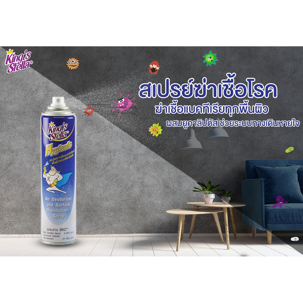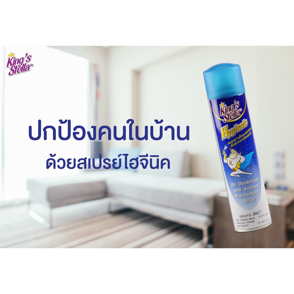 King’s Stella (คิงส์สเตลล่า) Hygienic ไฮจีนิค น้ำยาปรับอากาศ ฆ่าเชื้อแบคทีเรีย ในอากาศและพื้นผิว ขจัดกลิ่นอับ 300ml