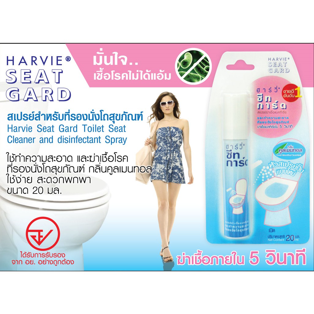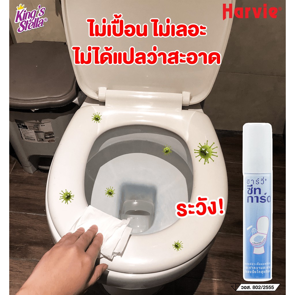 Harvie (ฮาร์วี่) Seat Guard น้ำยาฆ่าเชื้อแบคทีเรียบนพื้นผิว ภายใน5วิ ทำความสะอาดที่รองนั่งโถส้วม แอลกอฮอล์75% 20 ml
