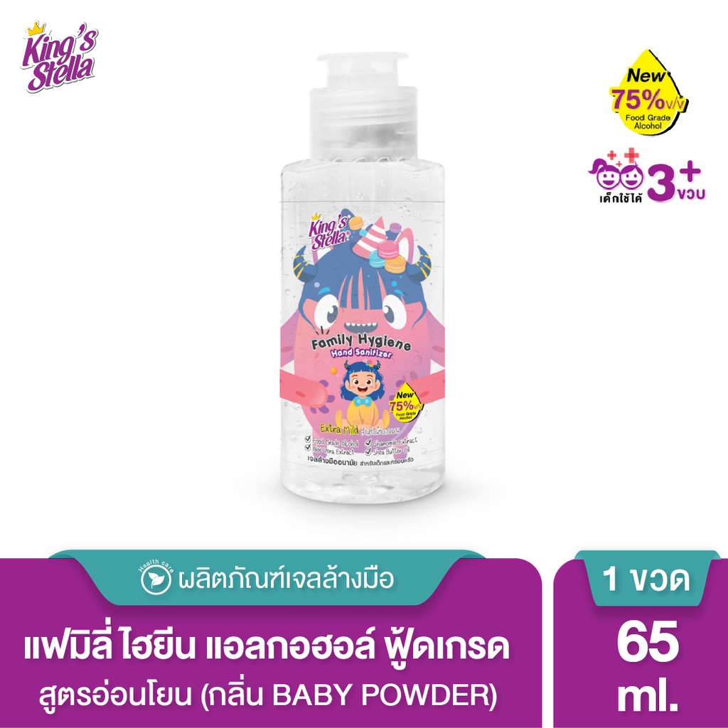 King's Stella Family Hand Gel Sanitizer เจลแอลกอฮอล์ล้างมือ 75% ฟู้ดเกรดfood grade สูตรอ่อนโยน เด็กใช้ได้ 65ml.