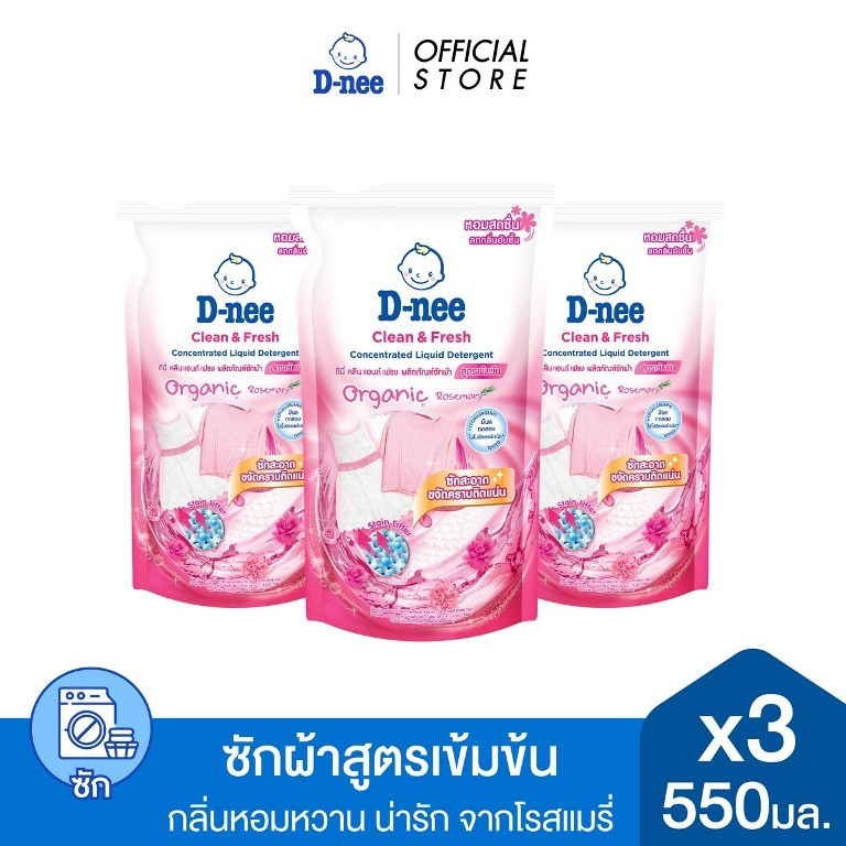 [แพ็ค 3] D-nee น้ำยาซักผ้า สูตรเข้มข้น Clean & Fresh ชนิดเติม ขนาด 550 มล.