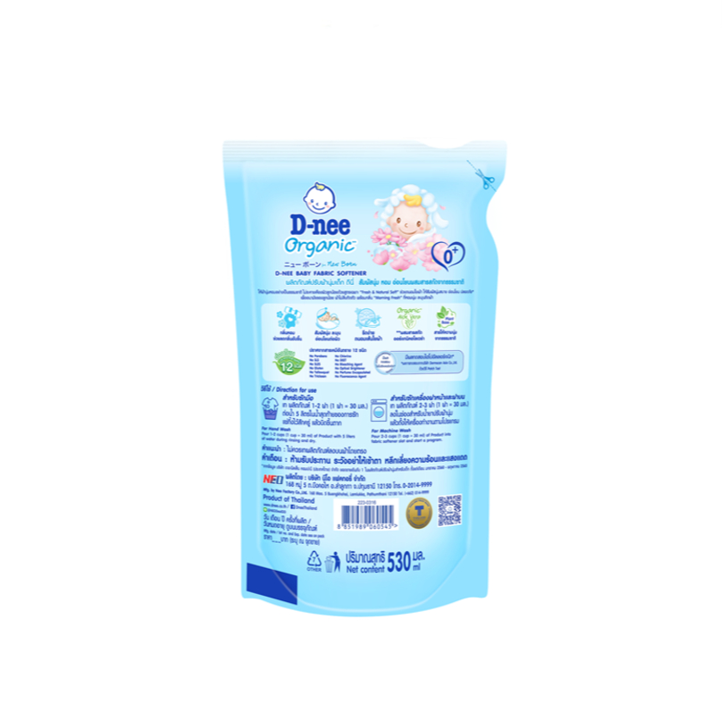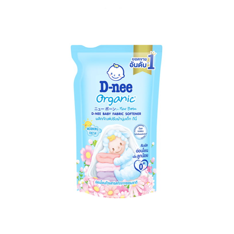 [ยกลัง] D-nee ดีนี่ ผลิตภัณฑ์ปรับผ้านุ่มเด็ก Organic New Born กลิ่น Morning Fresh ถุงเติม 530 มล., สีฟ้า