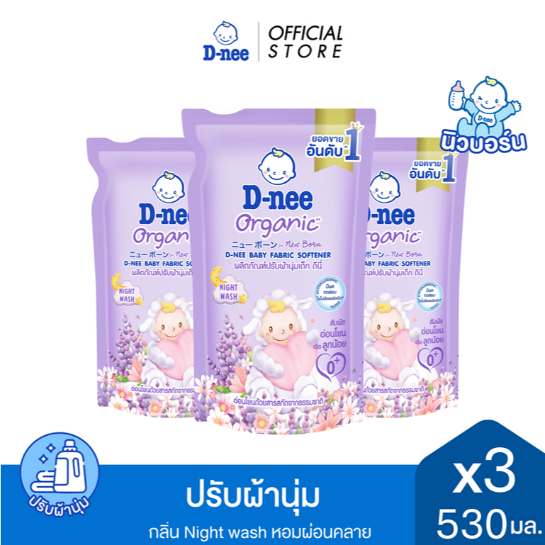[แพ็ค3] D-nee ดีนี่ ผลิตภัณฑ์ปรับผ้านุ่มเด็ก Night Wash 530 มล. X3, สีม่วง