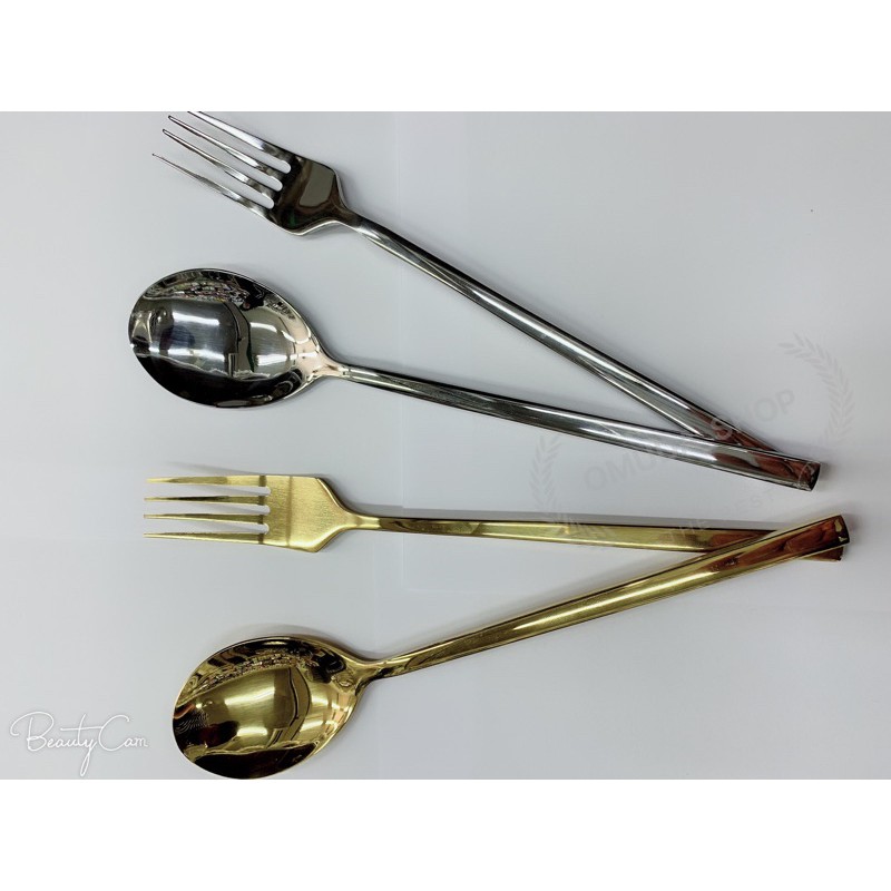 OMUDA_SHOP ช้อน&ส้อม-เกาหลี-แสตนเลส/1คู่-ยาว 20 ซมเนื้อสแตนเลสตัน