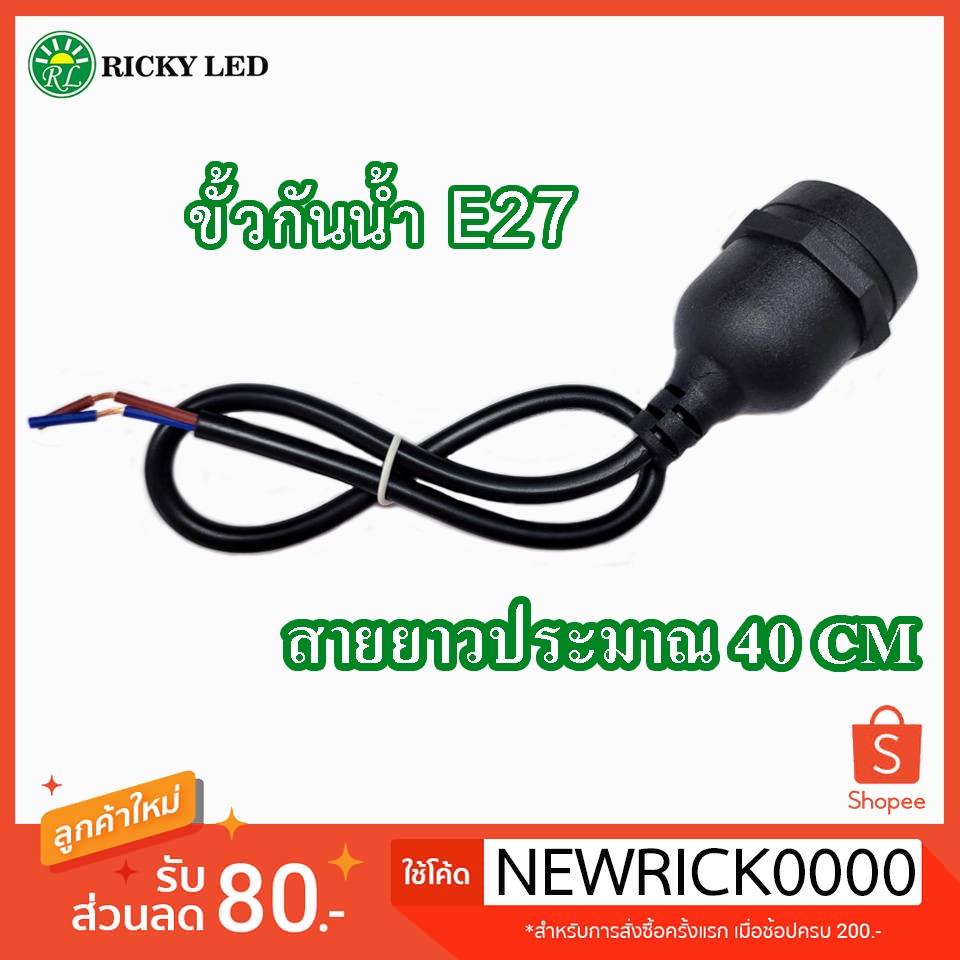 Rickyled ขั้ว E27ขั้วหลอดไฟ E27มีสวิตซ์เปิด-ปิด ขั้วไฟมีปลั๊กเสียบพร้อมสายไฟยาว 2.2 เมตร ขั้วหลอดไฟกันน้ำ45CM