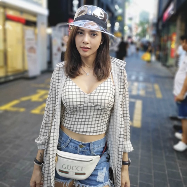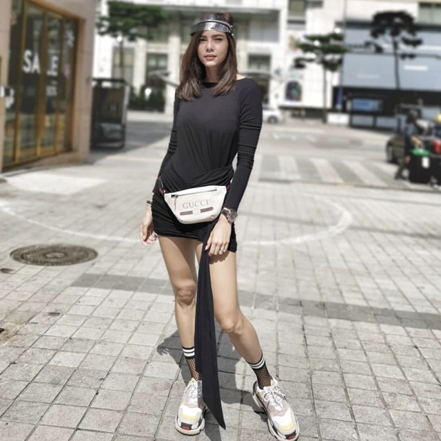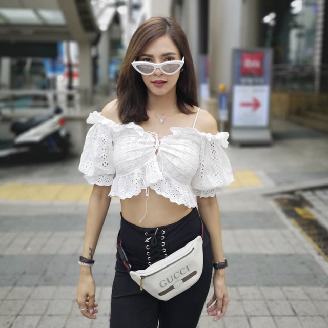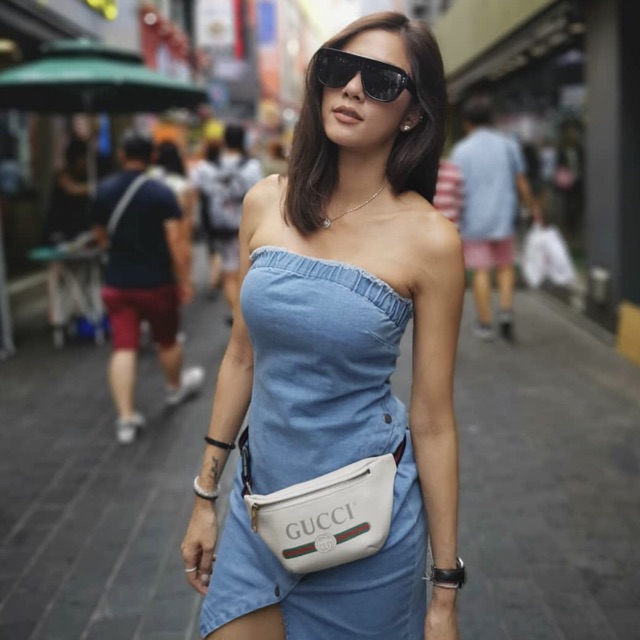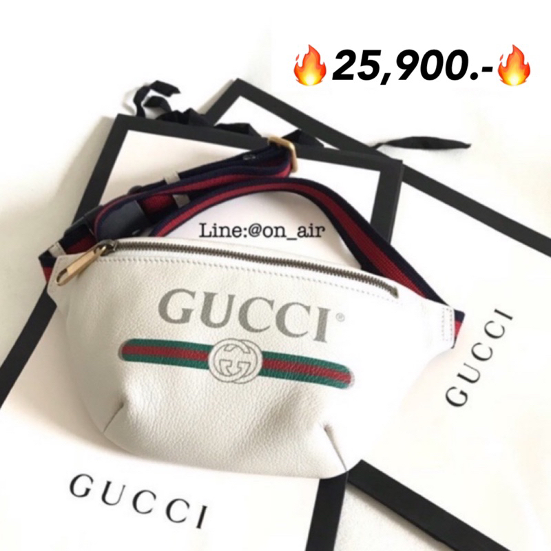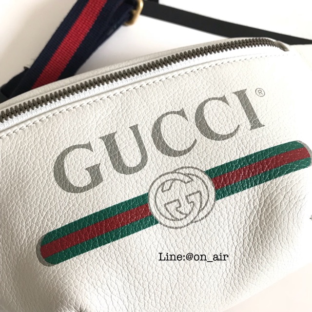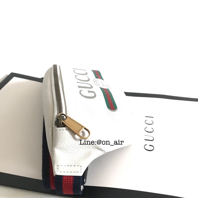 New gucci print small leather belt bag สีขาว