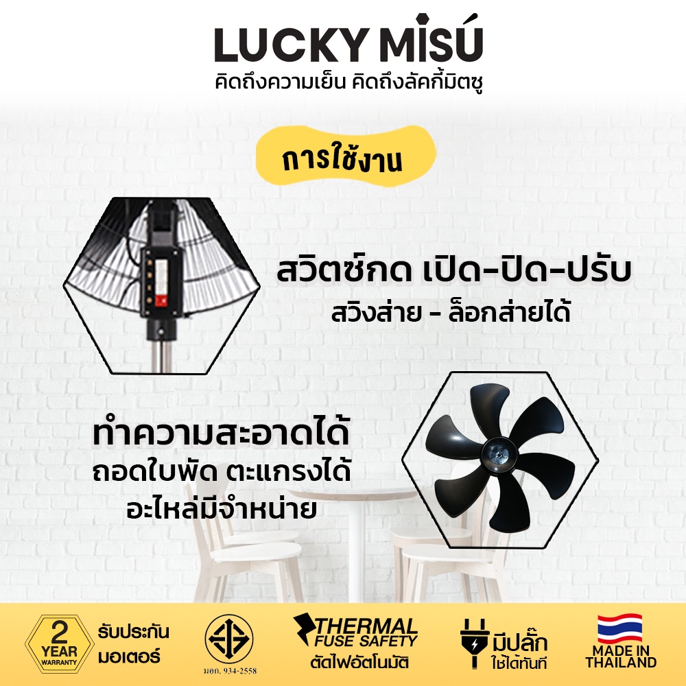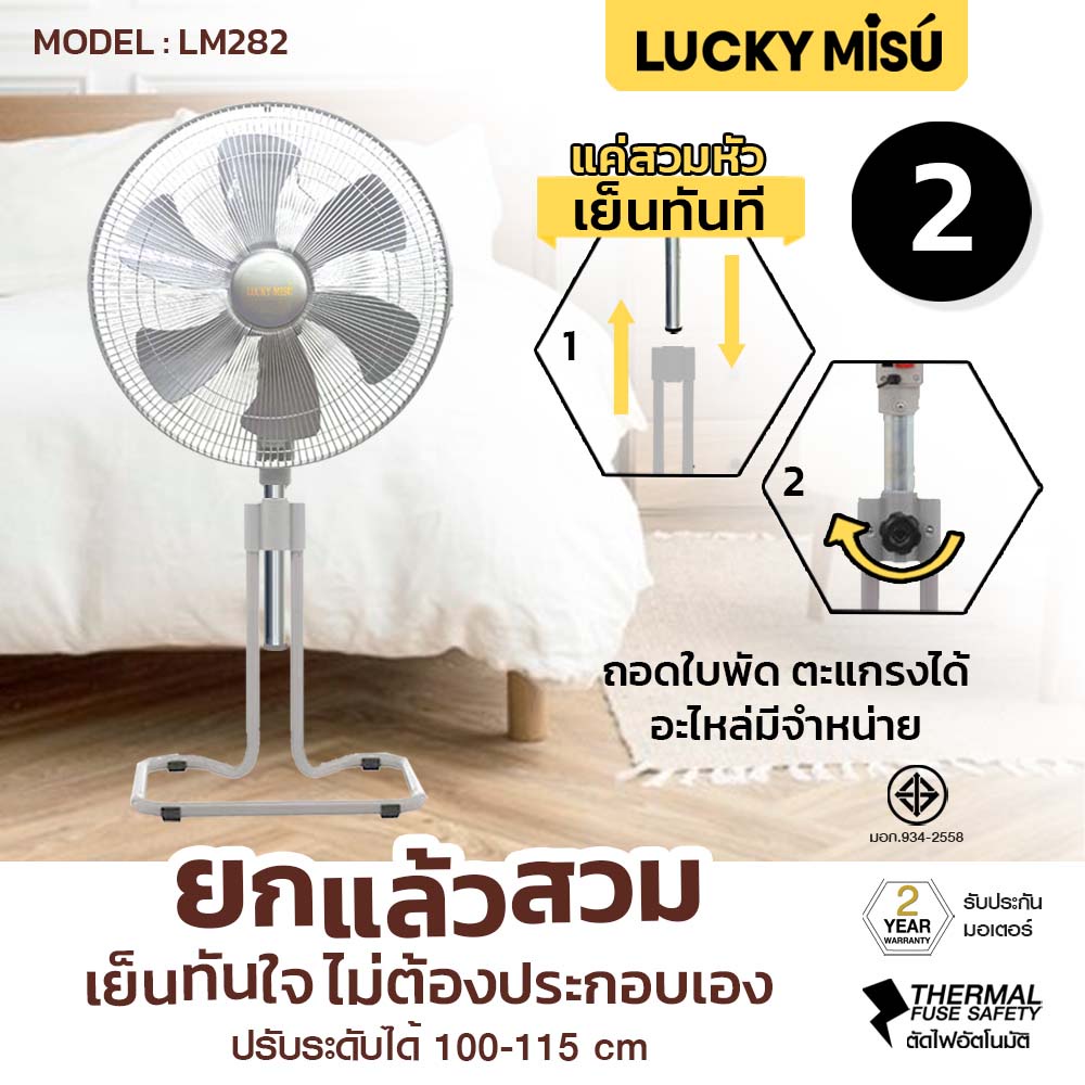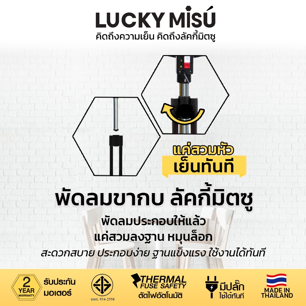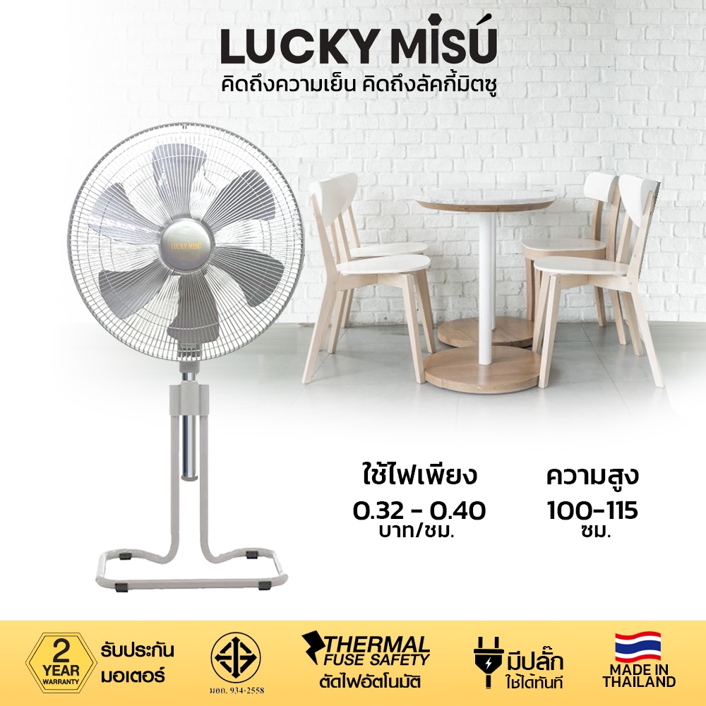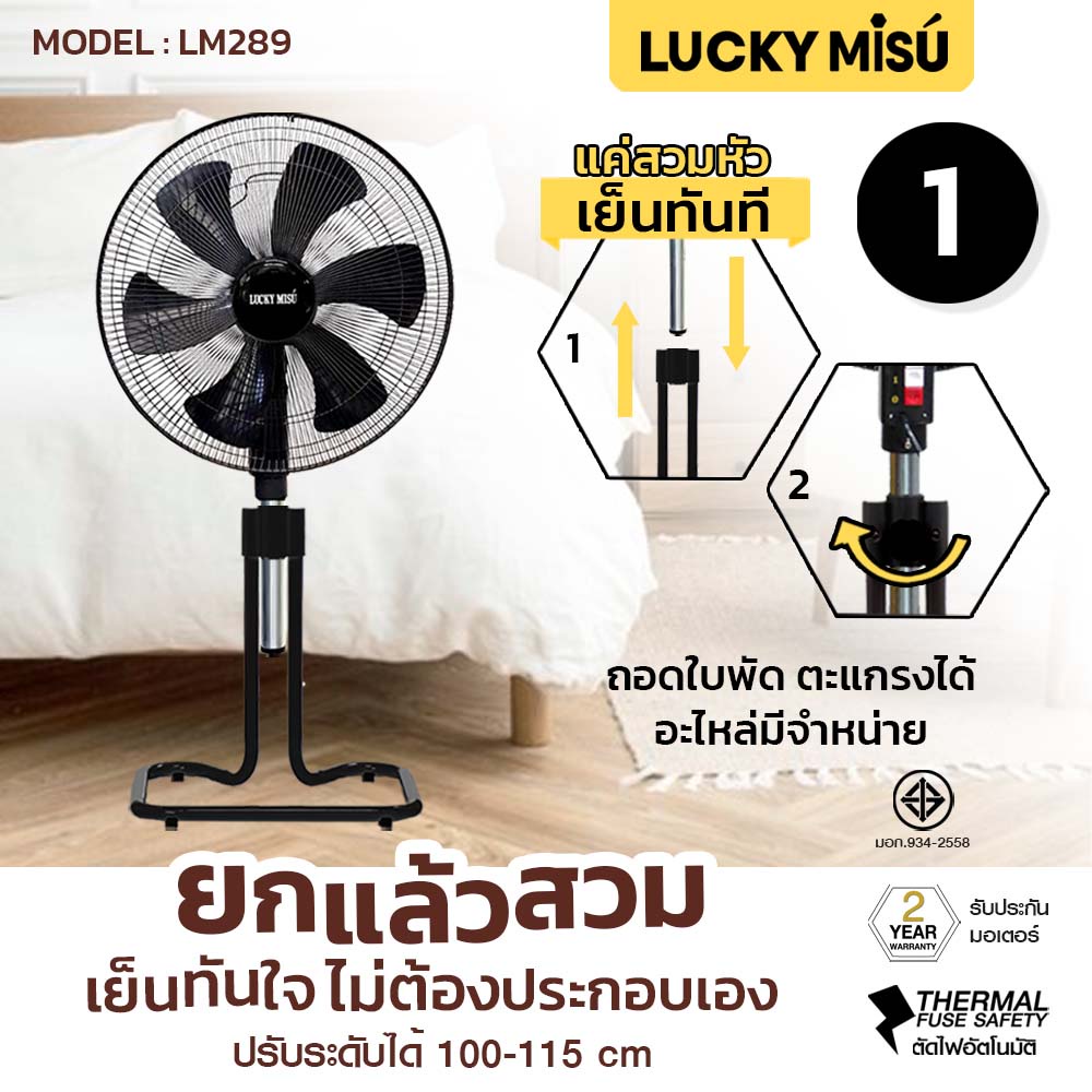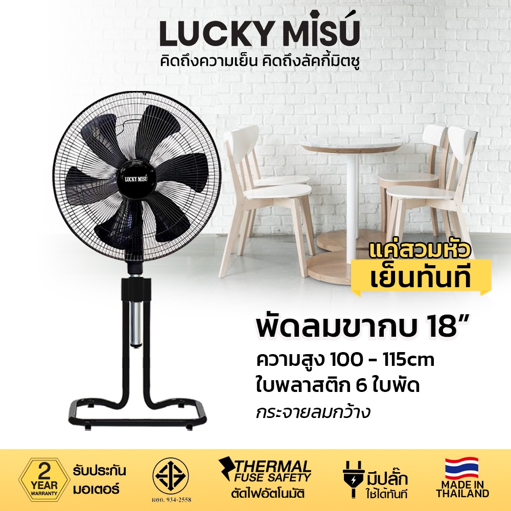 Lucky Misu 18" พัดลมประกอบเสร็จพร้อมใช้งาน ขากบ สไลด์ ตั้งพื้น สีดำ สีเทา_157