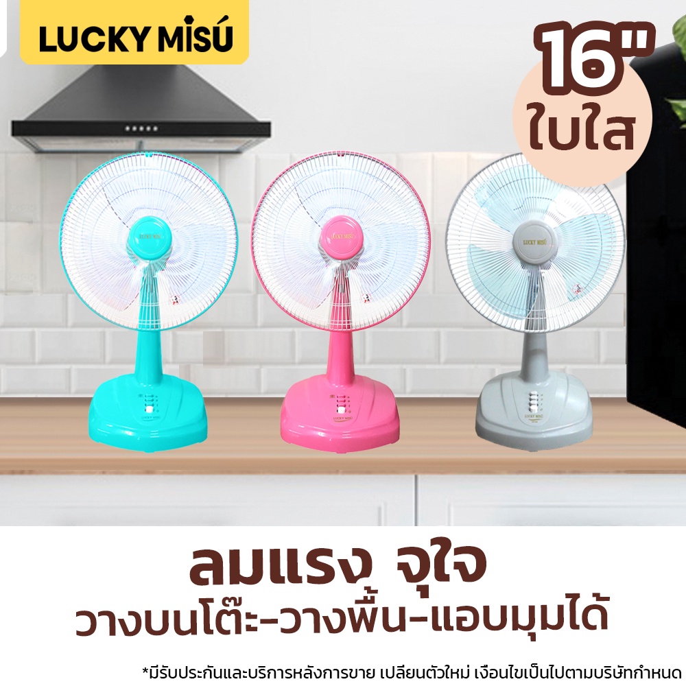 Lucky Misu พัดลมตั้งโต๊ะ 16" LM 629 สีเทา สีเขียวน้ำทะเล สีชมพูหวาน(บานเย็น)_61
