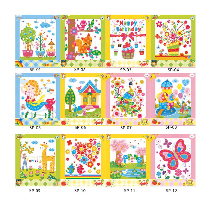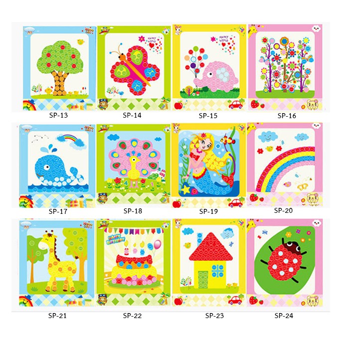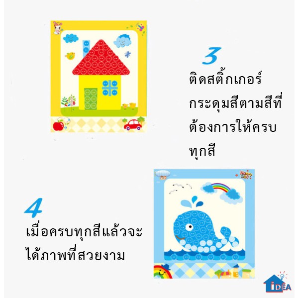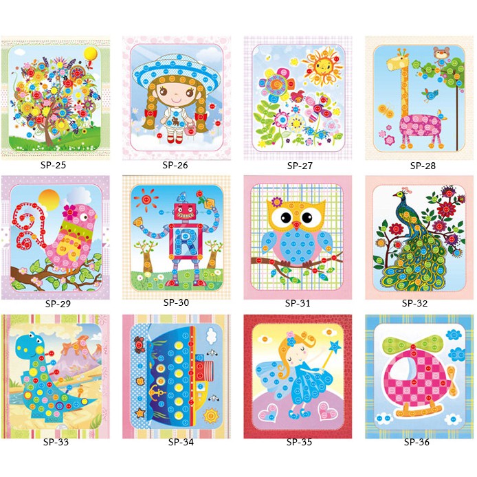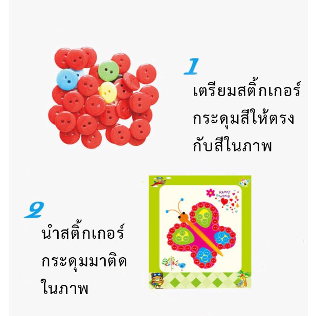 DIYติดภาพด้วยสติ้กเกอร์กระดุมสี ของเล่นงานประดิษฐ์ ศิลปะงานประดิษฐ์เด็ก ของเล่นฝึกสมาธิ ฝึกกล้ามเนื้อมัดเล็ก