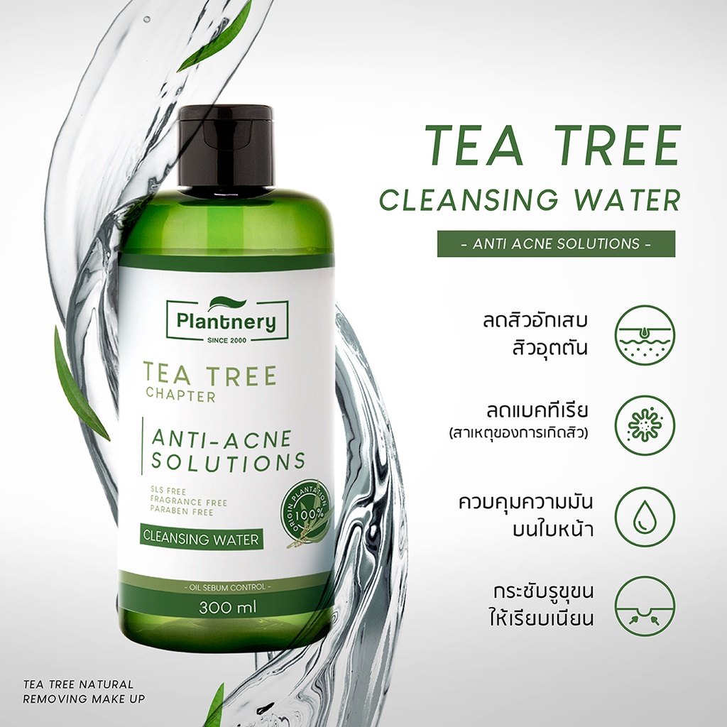 Plantnery Tea Tree First Cleansing Water 300ml คลีนซิ่งเช็ดเครื่องสำอาง สูตรลดสิว ควบคุมความมัน