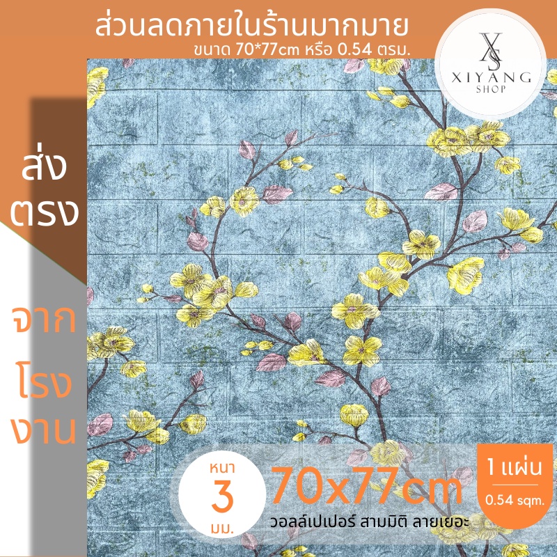 🔥วอลเปเปอร์🔥 70*77cm แผ่นใหญ่ วอลเปเปอร์ติดผนัง มีกาวในตัว 3Dwallpaper ลายดอกซากุระ (ราคาต่อแผ่น)