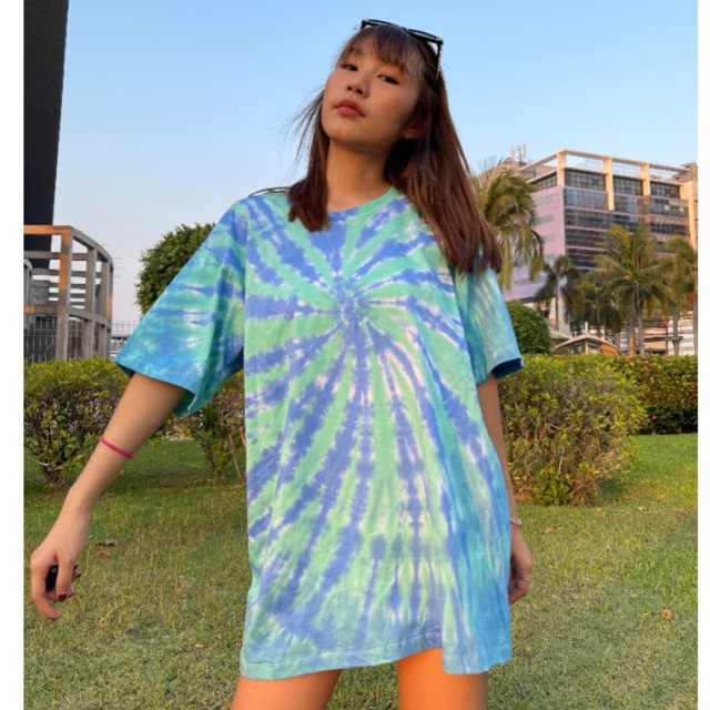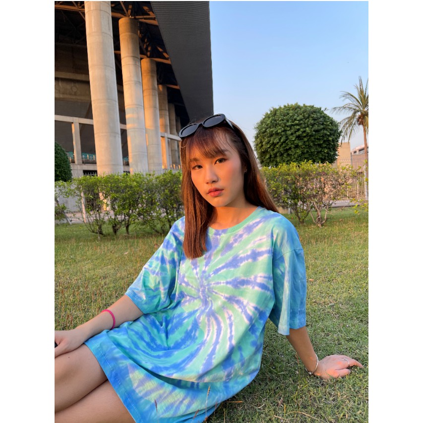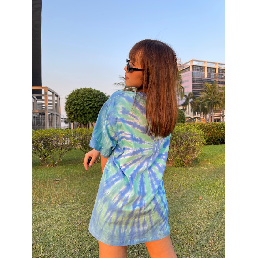 [ส่งใน1-2วัน] เสื้อมัดย้อมสีสด UNISEX | TIE DYE T-SHIRT | ผ้า Cotton100% - KT113-มีนาคม (เขียวมิ้น-น้ำเงินเข้ม)