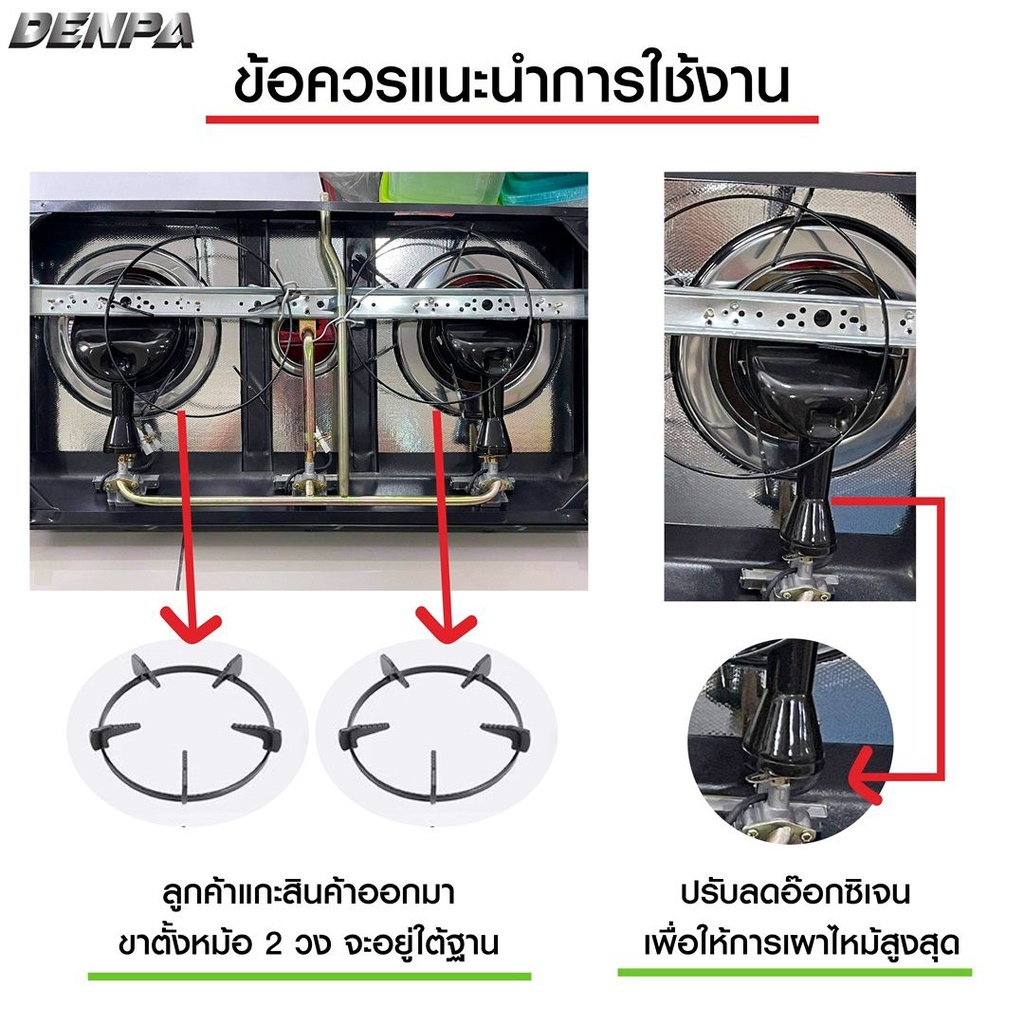 DENPA เตาแก๊ส เตาแก๊ส 2หัว เตาแก๊สหน้ากระจก (รับประกัน 1 ปีเต็ม) 016-1