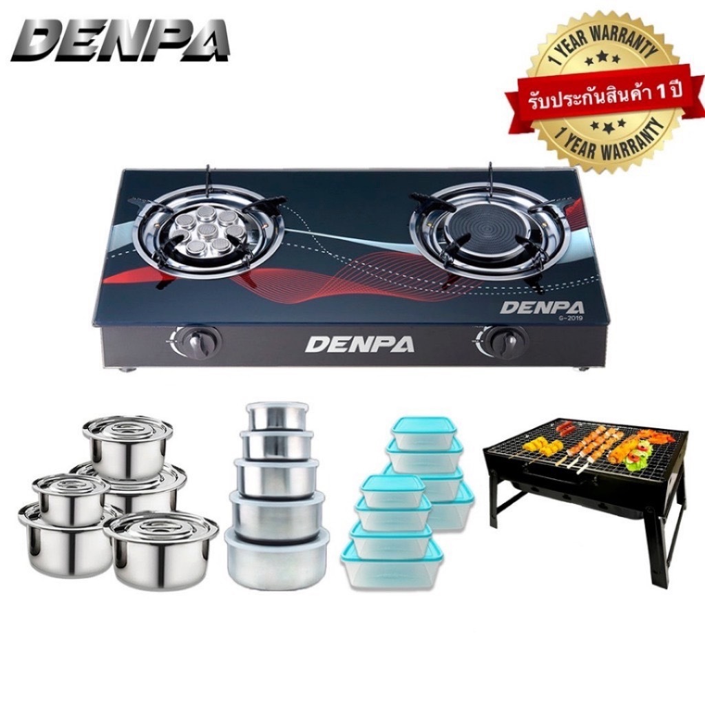 DENPA เตาแก๊ส เตาแก๊สหน้ากระจก เตาแก๊ส2หัว ฟรีของแถม 19 ชิ้น MIRROR011