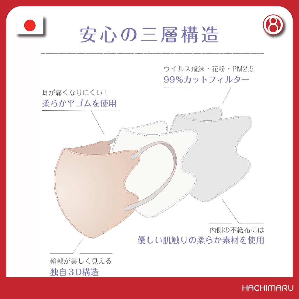 หน้ากากอนามัย Cicibella 3D Bi-Color D-Type Mask สำหรับคนหน้าเรียว 10 ชิ้น นำเข้าจากญี่ปุ่น