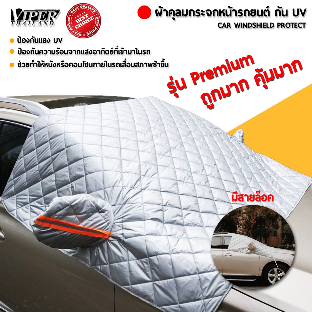 ผ้าคลุมหน้ารถ ผ้าคลุมกระจกรถยนต์ ผ้าคลุมหน้ารถยนต์ บังแดดรถยนต์ รุ่น Premium หนา ViperThailand