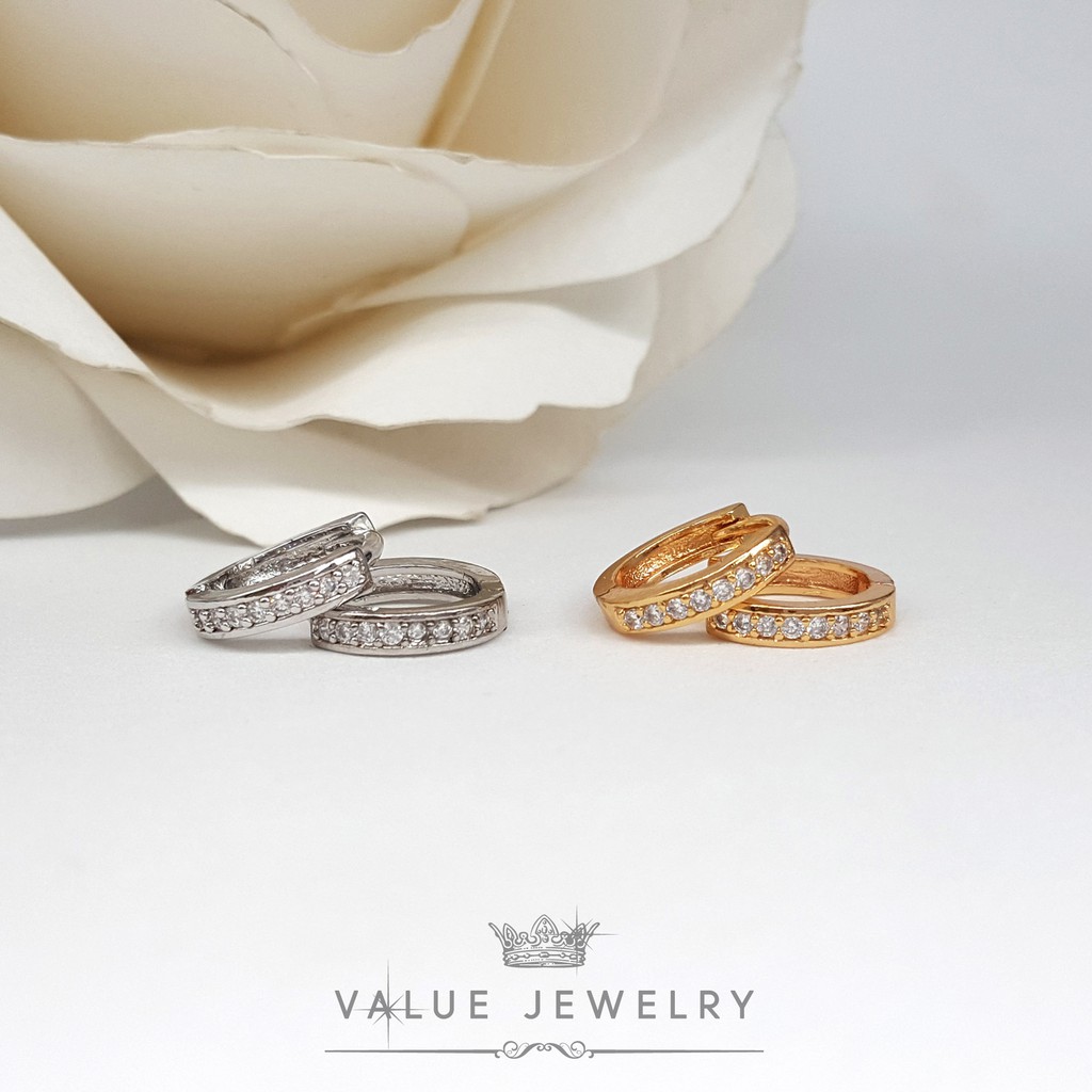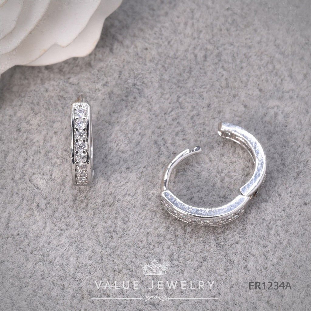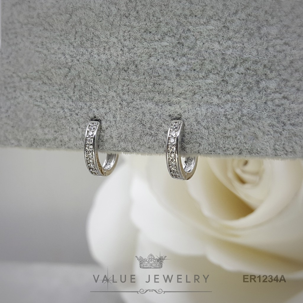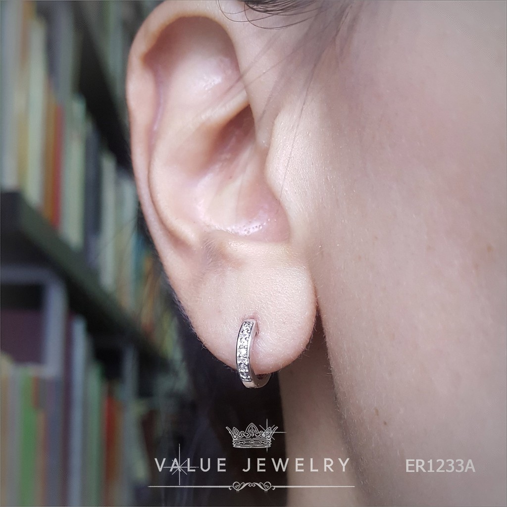 ต่างหูห่วง คริสตัลแท้ 1แถว มี2สี 2ขนาด รุ่นแนะนำ สำหรับคนแพ้ง่าย ต่างหู ER1234 ER1233 ER8014 ER8015Value Jewelry