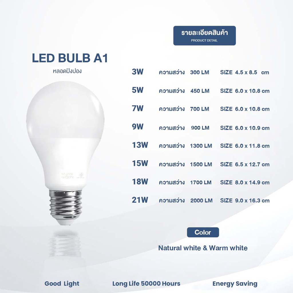 IWACHI หลอดไฟ LED หลอดปิงปอง LED รุ่น A1 ขั้วE27 แสง ขาวและวอร์มไวท์ หลอดไฟ led ไฟ led Bulb