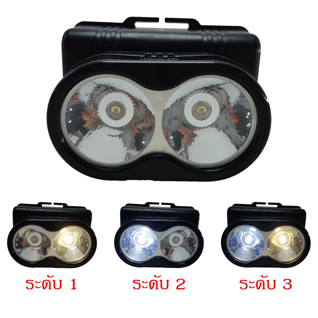 YASIDA ไฟฉายคาดหัว ไฟฉายคาดศีรษะ LED หมุนได้ แสงปรับได้3ระดับ ไฟฉายคาดศีรษะมีไฟ 2 สี สีขาวสีเหลือง รุ่น3353