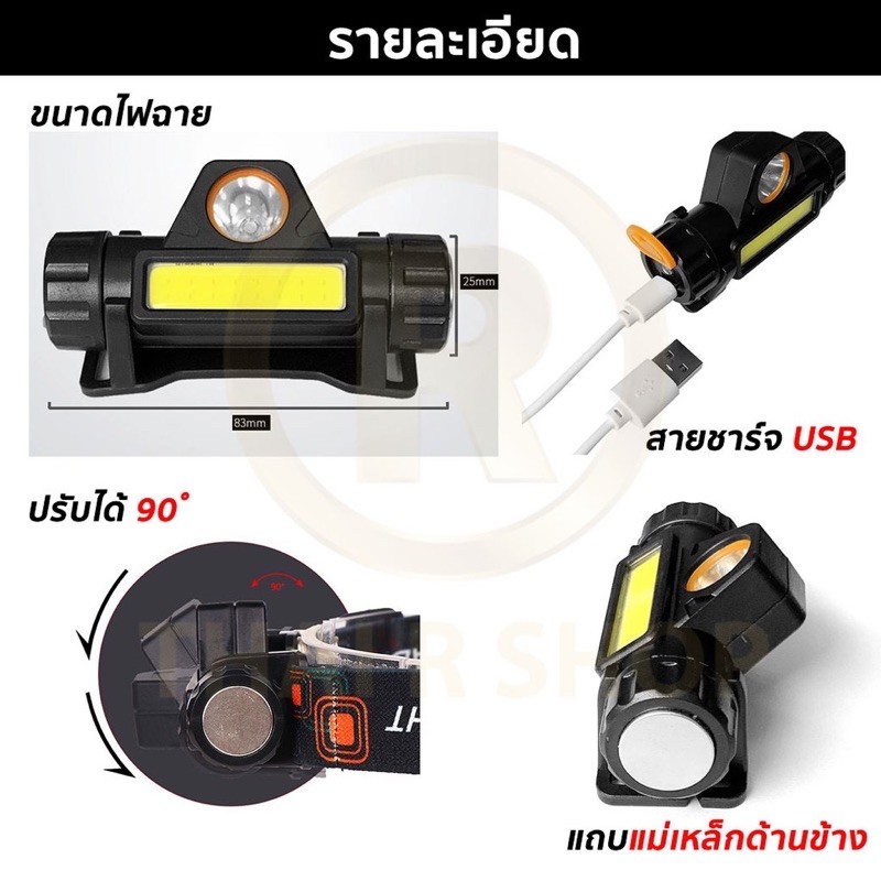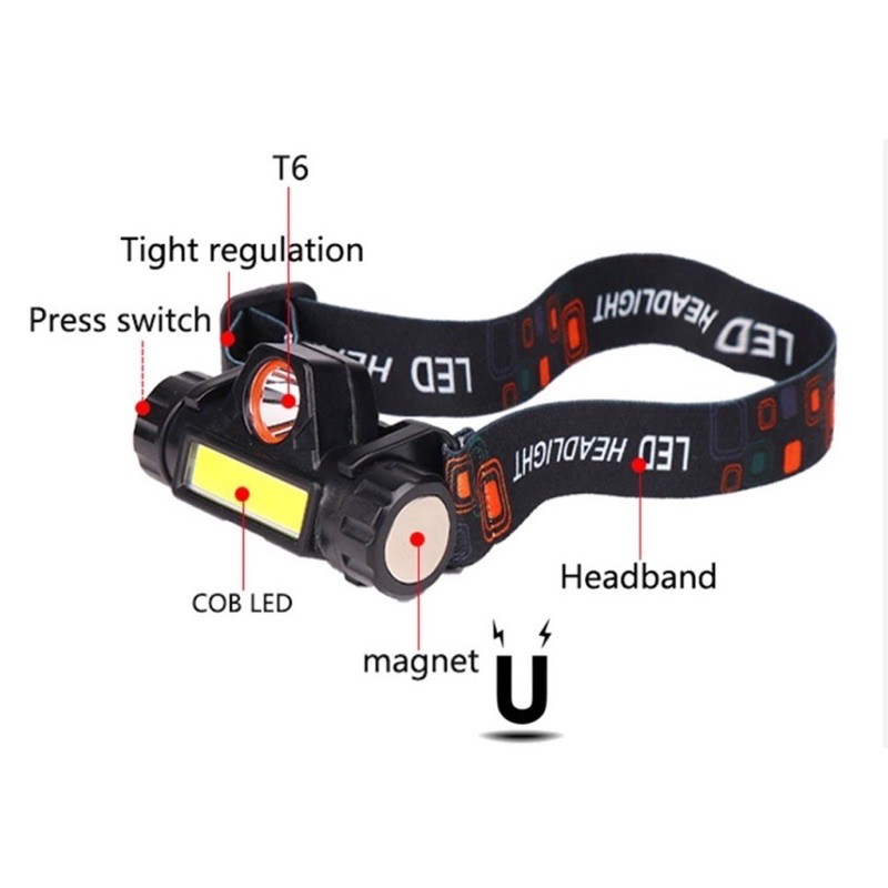 ไฟฉายคาดหัว Q5+COB Outdoor USB Rechargeable พร้อมแม่เหล็ก
