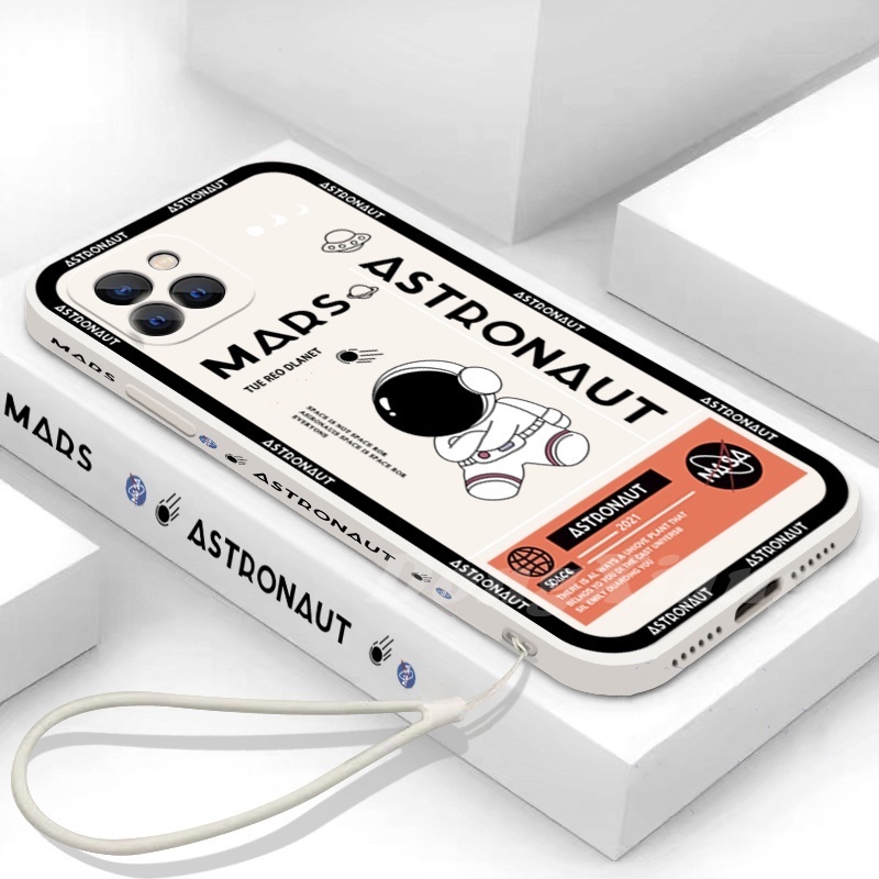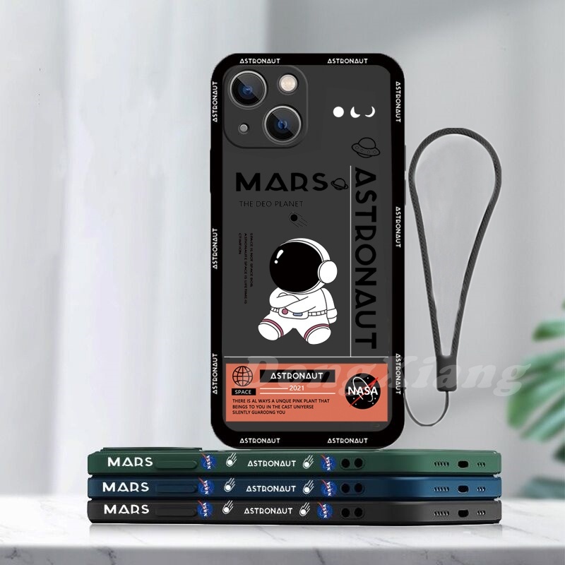 เคสโทรศัพท์มือถือ TPU แบบนิ่ม ลายนักบินอวกาศ Mars มีสายคล้อง สําหรับ OPPO A16 A54 A15 A94 A53 A52 A92 A5S A12 A7 A1K A3S F9 A37 A95 A76 A96 Reno 6