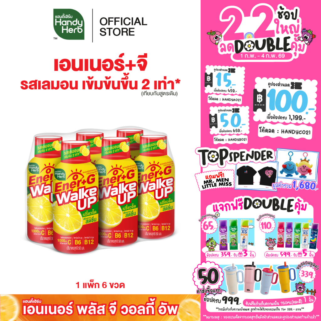[ฉลากใหม่] HandyHerb Ener+G Walke Up ชาเขียวสกัด โสมสกัด เเละวิตามินซี 1000 มก. รสเลมอนเข้มข้น 2 เท่า 1 แพ็ก (6 ขวด)