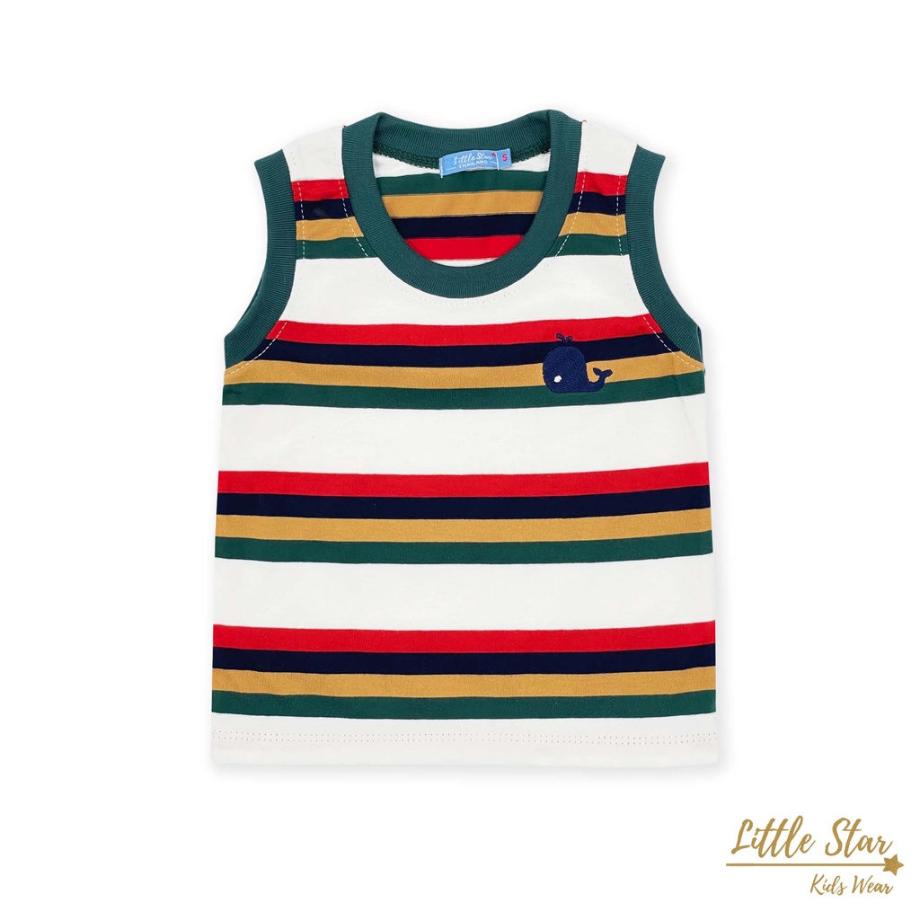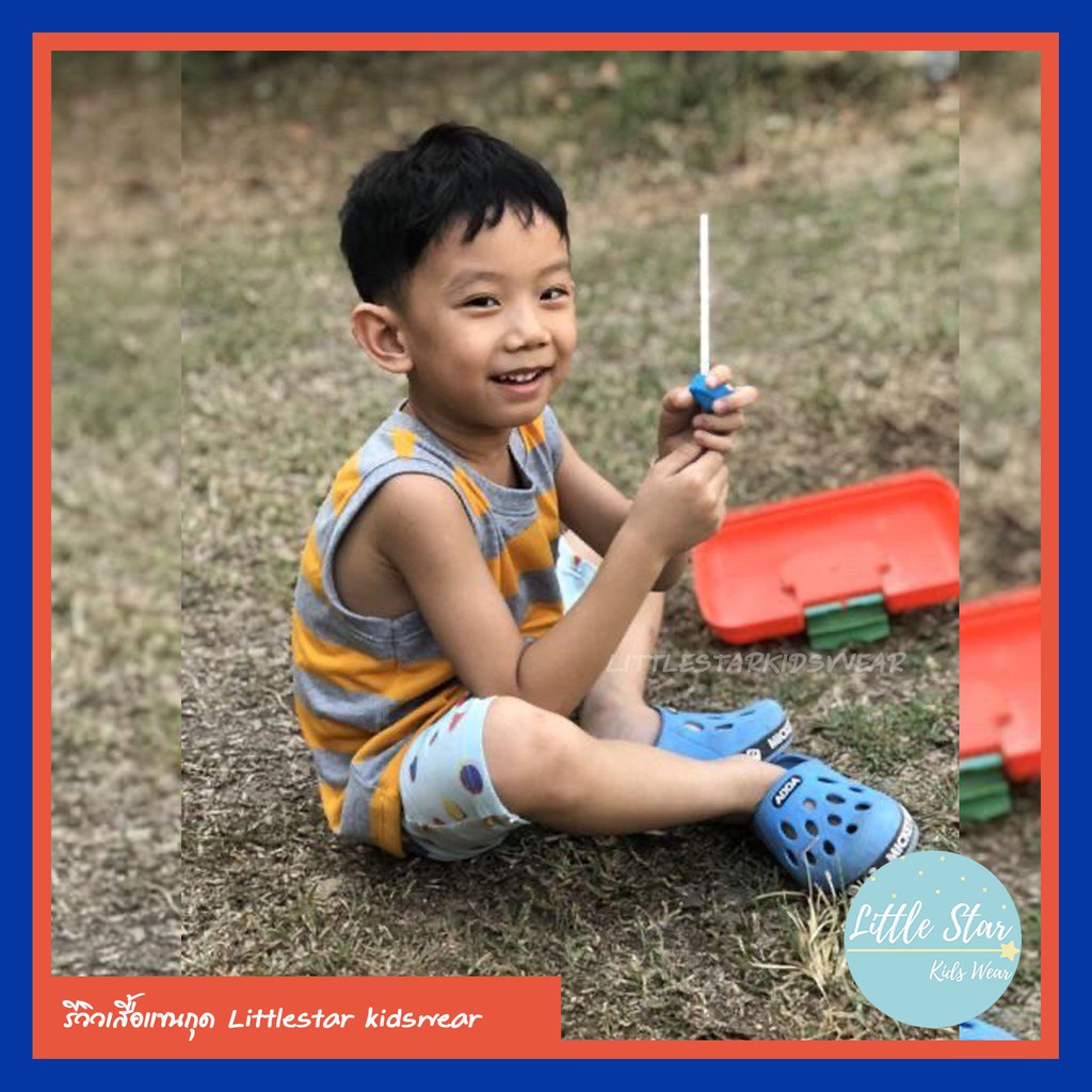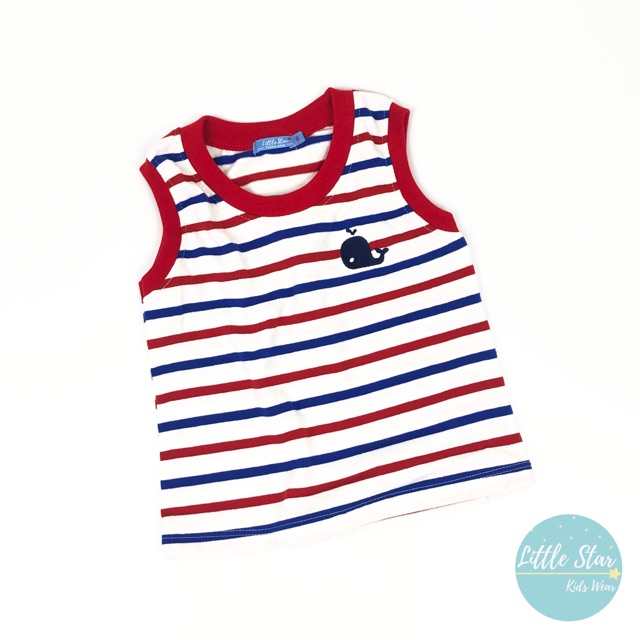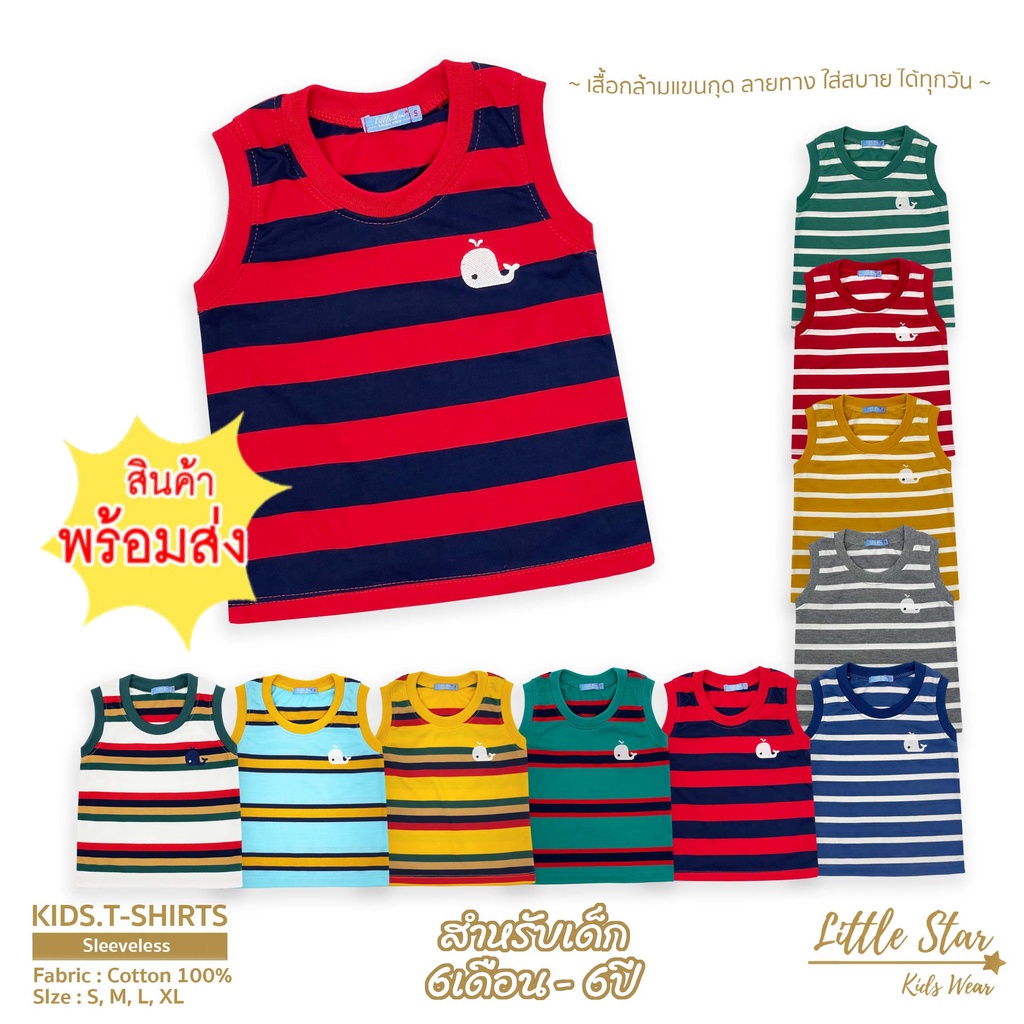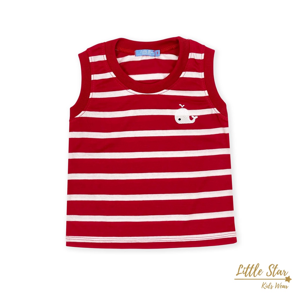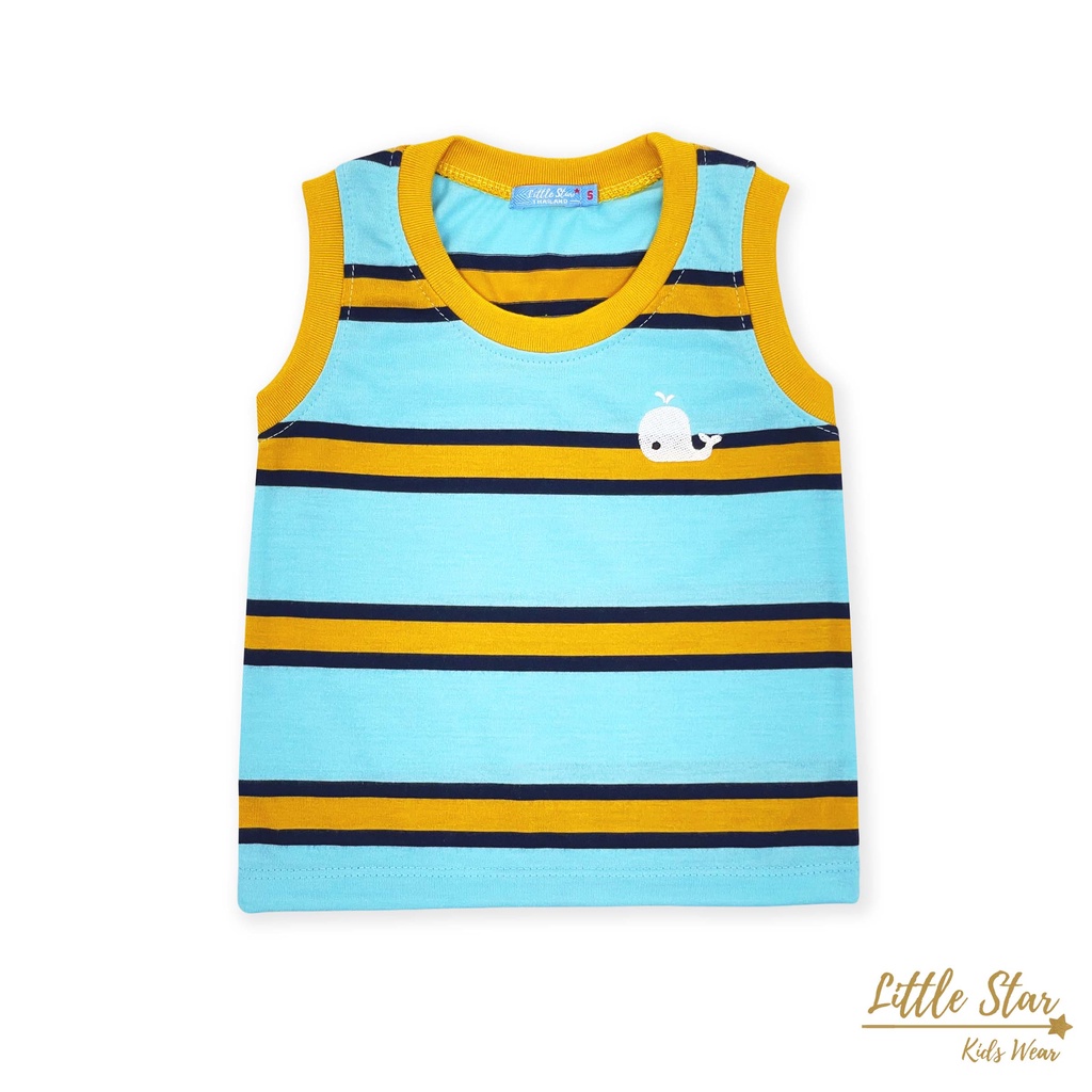 ⭐️Littlestar 👦🏻 เสื้อกล้ามเด็ก สำหรับเด็ก6 เดือน-1 ปี ทอริ้ว ปักลายวาฬ คอตต้อน [ราคาต่อ1ตัว] BTV0006