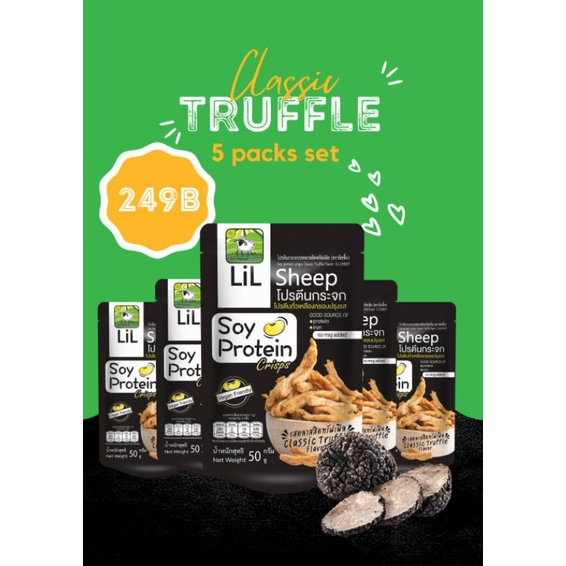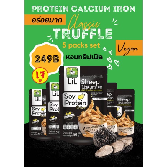 Lilsheep soy protein crisps โปรตีนกระจก เซ็ต 5 ห่อ หอมเห็ดทรัฟเฟิลแท้ๆ ขนมคลีน คีโตทานได้ กรอบอร่อยเพลิน ไม่ลงพุง