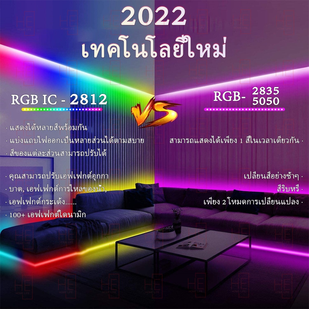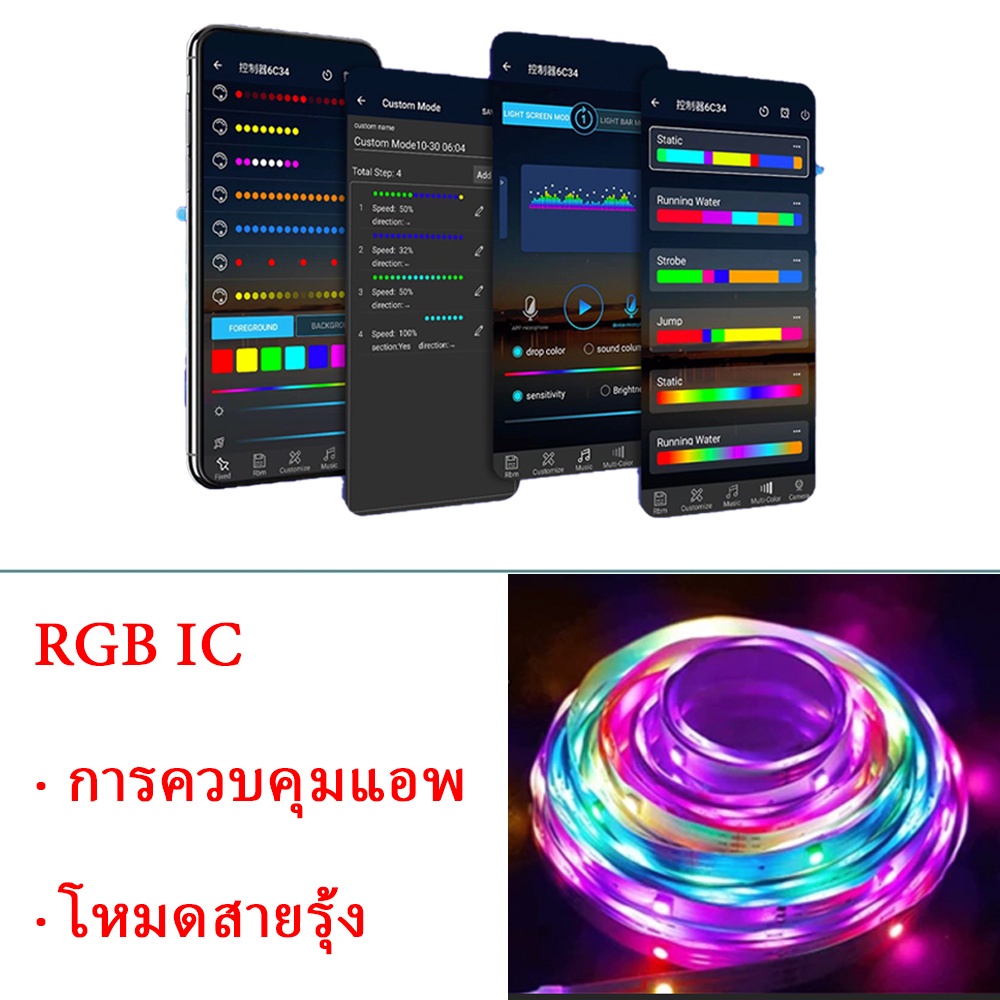 ไฟเเต่งห้อง ไฟติดห้อง โหมดสายรุ้ง RGBIC ไฟRGB ไฟ LED แบบเส้น การซิงโครไนซ์เพลง 5m10m20m30m การไล่ระดับสีที่มีสีสัน