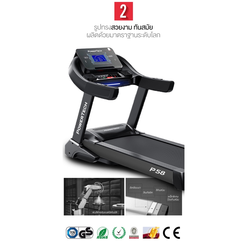 ลู่วิ่งไฟฟ้า P58 5 แรงม้า FITEX PowerTech สายพาน58cm ลู่วิ่ง ความชันไฟฟ้า20ระดับ โช๊ คคู่