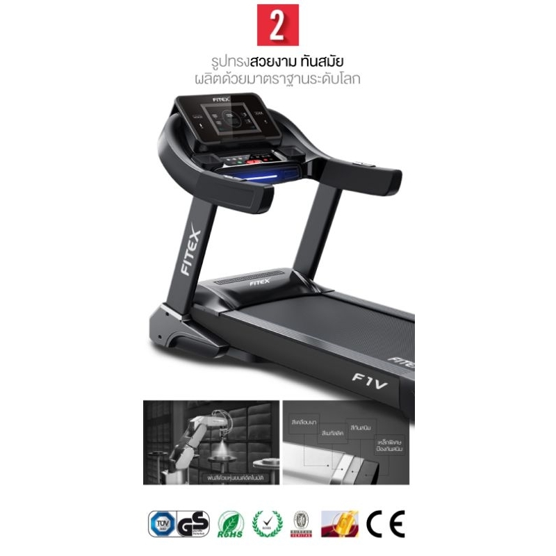 [ผ่อน 0%] ลู่วิ่งไฟฟ้า F1V AC 5 แรงม้า FITEX สายพาน 58 cm ความชันไฟฟ้า 20 ระดับ เชื่อมต่อ Zwift