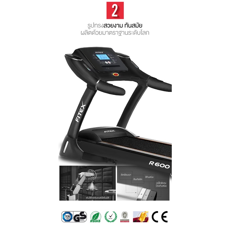 ลู่วิ่งไฟฟ้า R600 4.8 แรงม้า ลู่วิ่ง FITEX พื้นที่วิ่ง 50 cm Zwift ระบบถุงลม โช๊คอัพคู่ใหญ่พิเศษ ความชันไฟฟ้า 18 ระดับ