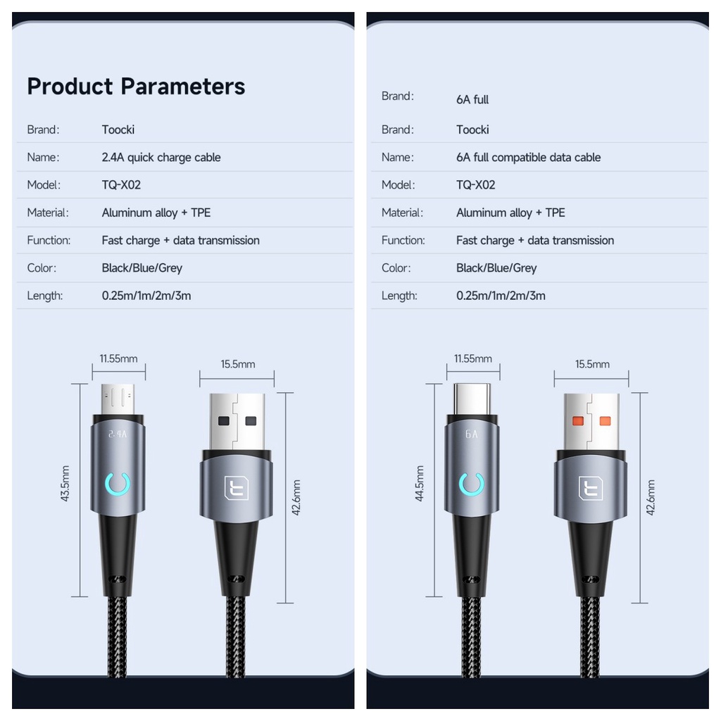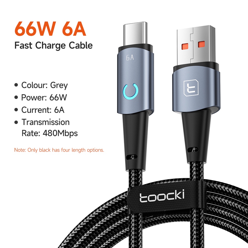 Toocki 6A USB Type C สายชาร์จเร็วมาก พร้อมไฟแสดงสถานะ LED สายชาร์จ Micro USB การส่งข้อมูล